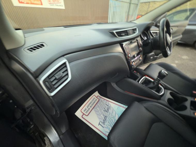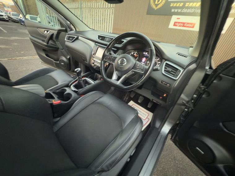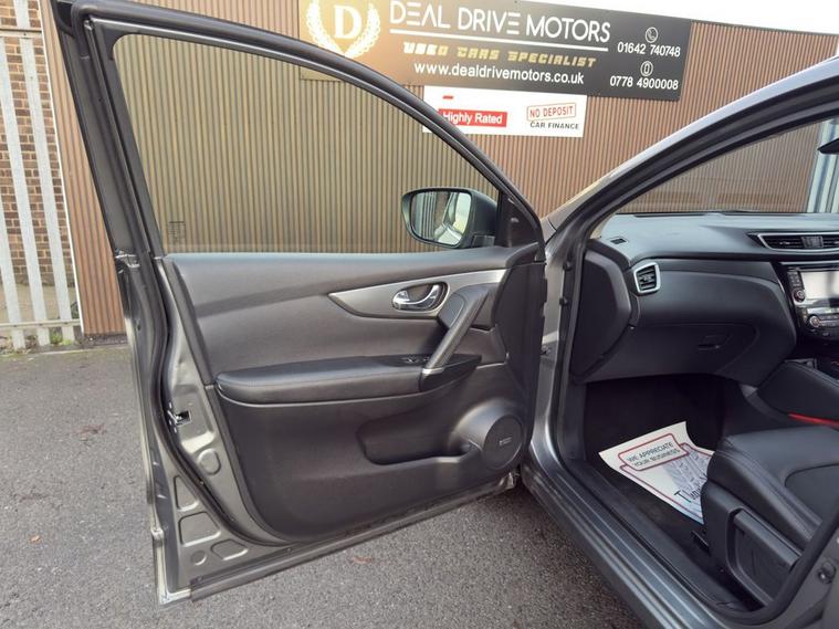 2018 Nissan Qashqai 1.5 dCi Tekna 110 PS Available now at DealDrive Motors. The Qashqai Tekna is one of the highest-spec models in the range, offering an ideal blend of premium equipment, comfort and excellent running costs. Powered by a refined 1.5-litre diesel engine, it delivers impressive fuel efficiency of up to 74 mpg, making it a smart choice for both urban and long-distance driving. Fully Euro 6 / ULEZ compliant, it is ready for all Clean Air Zones. This Tekna model elevates the driving experience with a panoramic glass roof, 360 Around View Monitor, heated front seats, front & rear parking sensors, and NissanConnect Navigation with Bluetooth and DAB audio. Safety and convenience are further enhanced by Intelligent Park Assist, lane departure warning, and traffic sign recognition. Inside, the cabin offers a premium feel, with part-leather upholstery, dual-zone climate control and a comfortable driving position. The Qashqais smooth ride, low running costs, and high equipment level make it one of the most appealing family SUVs in its class. Presented in great condition and HPI clear for peace of mind. Ownership Highlights: Power: 110 PS 060 mph: 11.9 sec Drive: FWD | Diesel | Manual Emissions: Euro 6 | ULEZ Compliant Fuel Economy: up to 74 mpg Spec: Pan Roof | 360 Cameras | Heated Seats | Sat Nav | Parking Sensors History: HPI Clear