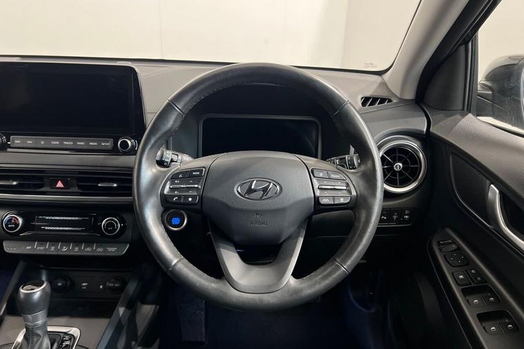 With exceptionally low mileage for its age, this 2021 Hyundai KONA h GDi Premium offers a superb ownership proposition. This one owner vehicle boasts a 1.6 litre petrol hybrid engine and meets Euro 6 emissions standards. It comes equipped with rear parking sensors for easier manoeuvring, automatic headlights that activate with a dusk sensor, and heated front seats for added comfort. Stay connected on the go with Bluetooth connectivity and enjoy seamless integration with your smartphone through Android Auto. The MOT is valid until September 2026, providing peace of mind. This Hyundai KONA stands out with its impressive fuel economy, achieving an excellent 57 miles per gallon, which is better than many similar vehicles. Its low CO2 emissions also contribute to a more environmentally conscious drive. Furthermore, its low insurance group rating means that running costs are kept to a minimum, making this a particularly economical choice. With only 8151 miles covered, this KONA represents a fantastic opportunity to acquire a well maintained and feature rich hybrid SUV.