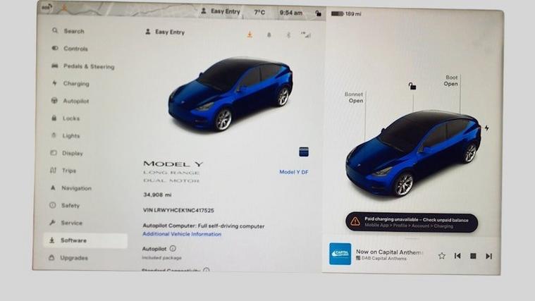 This 2022 Tesla Model Y Long Range boasts a single owner from new, offering a pristine example of this popular electric vehicle. As a Four Wheel Drive model, it combines impressive performance with the efficiency of electric power, featuring an 85 kWh battery that provides a maximum range of 331 miles when new. Charging is convenient, with a full charge at home taking approximately 12 hours using a 7kW charger, and rapid charging to 80% achievable in just 25 minutes at a public station. This Model Y comes equipped with modern conveniences such as LED headlights, an expansive glass roof offering ultraviolet and infrared protection, a heated steering wheel, and heated front seats for enhanced comfort. Safety is also a priority, with blind spot monitoring included. The MOT is valid until October 2026, and the vehicle offers substantial boot space for practicality. The highlights of this Tesla Model Y Long Range truly set it apart. Its acceleration is a standout feature, achieving 0 to 60 miles per hour in a swift 4.8 seconds, demonstrating its dynamic capability. This rapid acceleration, combined with the 331 mile maximum range, indicates a superior driving experience compared to many other vehicles in its class. The combination of its electric drivetrain, advanced features, and excellent provenance makes this Model Y a compelling choice for those seeking a blend of performance, efficiency, and modern technology.