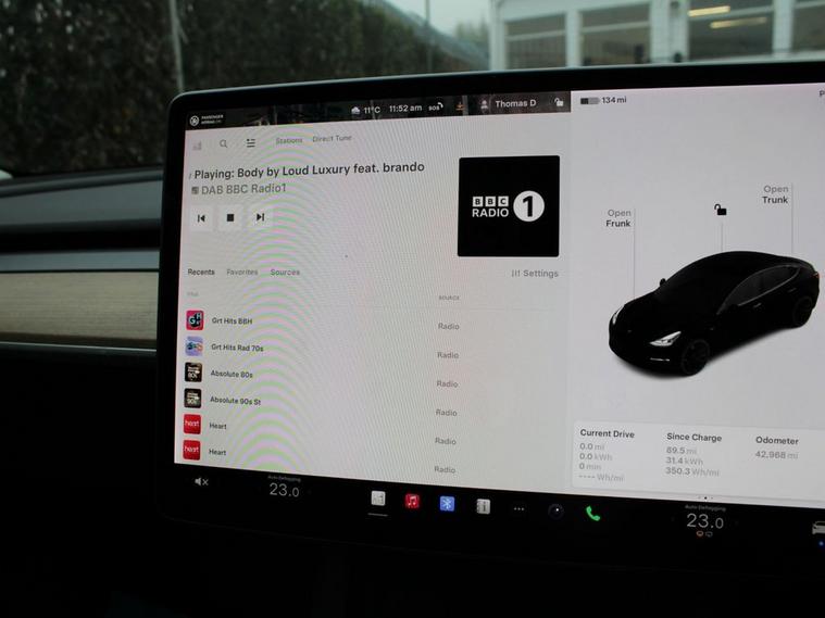 **92.8% BATTERY HEALTH** This 2021 Tesla Model 3 Performance is a superb example, having been owned by only one person since new. This electric vehicle boasts a powerful Four Wheel Drive system and an impressive 82 kWh battery, offering a maximum range of 340 miles when new. Charging at home on a 7kW charger will take approximately 12 hours for a full charge, while rapid public charging can take you from empty to 80% in just 26 minutes. The Performance variant of the Model 3 truly lives up to its name, delivering exhilarating acceleration from 0 to 60mph in a mere 3.1 seconds, a figure that sets it apart from many other vehicles. This exceptional performance is complemented by a large boot space, providing ample practicality for everyday use and longer journeys. The 340 mile range also highlights its capability for extended travel, making it a compelling choice for those seeking both speed and utility in an electric car.