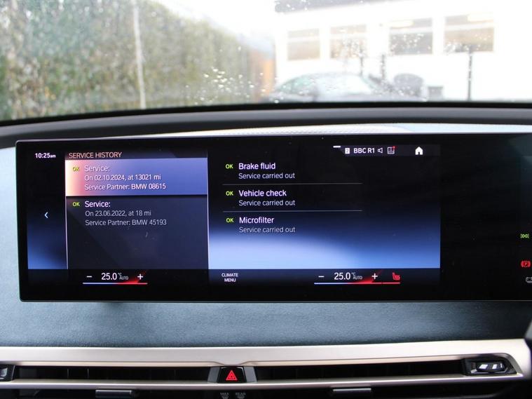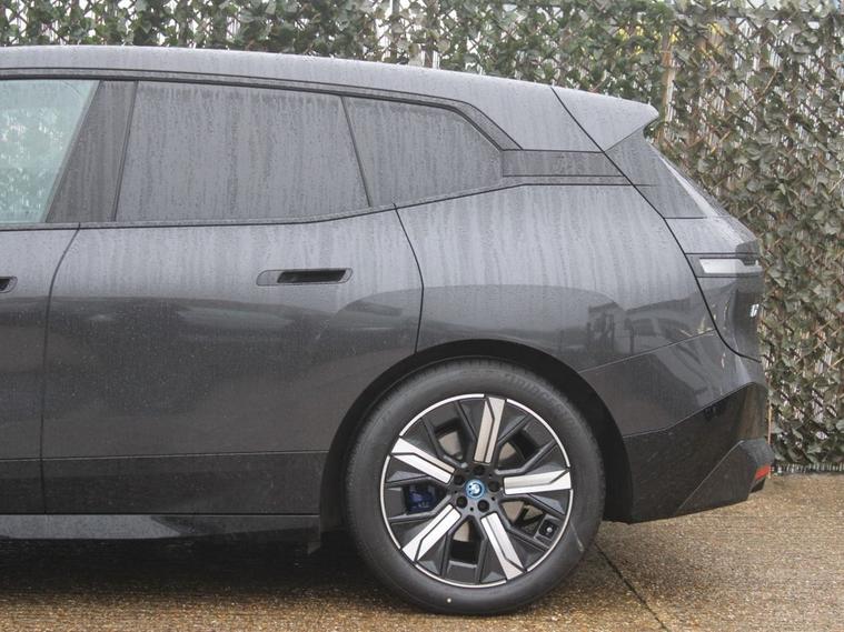 **97.4% BATTERY HEALTH** This 2022 BMW iX 40 M Sport presents an exceptional ownership proposition, having been driven only 18, 578 miles by its sole owner. As a fully electric vehicle, it offers a compelling blend of advanced technology and impressive performance. The Four Wheel Drive system ensures confident handling, while the 77 kWh battery provides a maximum range of 257 miles when new. Charging is convenient, with a full charge at home taking approximately 10 hours and 45 minutes using a 7kW charger, and a rapid 34 minutes to reach 80% capacity at a public charging station. This iX also boasts a substantial towing weight of 2500 kg. The M Sport trim enhances the driving experience with features like the Technology Plus Pack, which includes a 360 Degree Camera for effortless parking and a Premium Branded Sound System for immersive audio. The Parking Assistant Plus further aids manoeuvrability. For a more open and airy cabin feel, the Skylounge Pack incorporates an Opening Panoramic Sunroof. Inside, the Stepped Microfibre Cloth Loft Interior Design in Stone Grey offers a sophisticated and modern environment. The Driving Assistant Professional suite, featuring Adaptive Cruise Control, provides a more relaxed and safer journey. These features collectively demonstrate how this BMW iX surpasses expectations, offering a refined and capable electric driving experience, capable of accelerating from 0 to 60 mph in just 6.1 seconds.