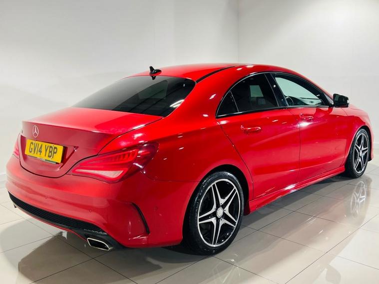 Mercedes-Benz CLA 2.1 CLA220 CDI AMG Sport Coupe 4dr Diesel 7G-DCT Euro 6 (s/s) (170 ps) Registration: GV14YBP | 60, 000 miles | Full Service History | Finished in Jupiter Red with Black Artico Leather and Dinamica Interior A striking and beautifully presented Mercedes-Benz CLA220 CDI AMG Sport Coupe, finished in vibrant Jupiter Red with a Black Artico leather and Dinamica microfibre interior. This model combines sporty AMG styling with refined comfort and impressive efficiency enhanced by the Night Package, Heated Seats, and Reversing Camera for added practicality and luxury Powered by the smooth and efficient 2.1-litre CDI diesel engine producing 170 PS, paired with the refined 7G-DCT automatic gearbox, it delivers strong performance, effortless cruising, and excellent economy. Fully Euro 6 compliant and ULEZ friendly, its stylish, efficient, and ready to impress Key Features 2.1-litre CDI diesel engine (170 PS) 7G-DCT automatic transmission with paddle shift Euro 6 ULEZ compliant AMG Sport styling with aerodynamic body kit and sport suspension Night Pack gloss black mirror housings, window surrounds and grille accents Heated Front Seats Reversing Camera 18 AMG twin-spoke alloy wheels LED daytime running lights and bi-xenon headlights Dual-zone automatic climate control Cruise control and speed limiter Front and rear parking sensors Flat-bottom AMG multifunction steering wheel Artico leather and Dinamica upholstery with contrast stitching Bluetooth connectivity, DAB radio and media interface Optional Equipment Jupiter Red paint finish Night Package Heated Front Seats Reversing Camera Front and rear carpet mats Additional Information 60, 000 miles covered Full Service History Combined economy around 62 mpg (depending on driving conditions) 0 to 62 mph in approximately 8.2 seconds Road tax: £20 per year A stylish, efficient and well-specified CLA220 AMG Sport Coupe, finished in Jupiter Red with Night Pack, Heated Seats and Reverse Camera a perfect mix of performance and elegance