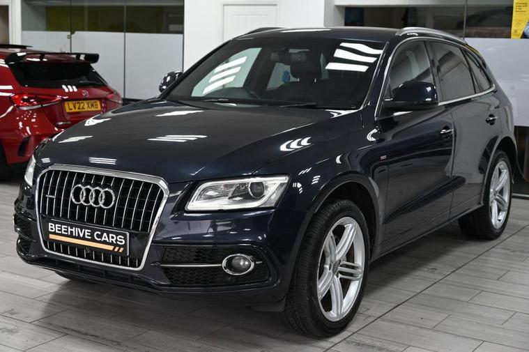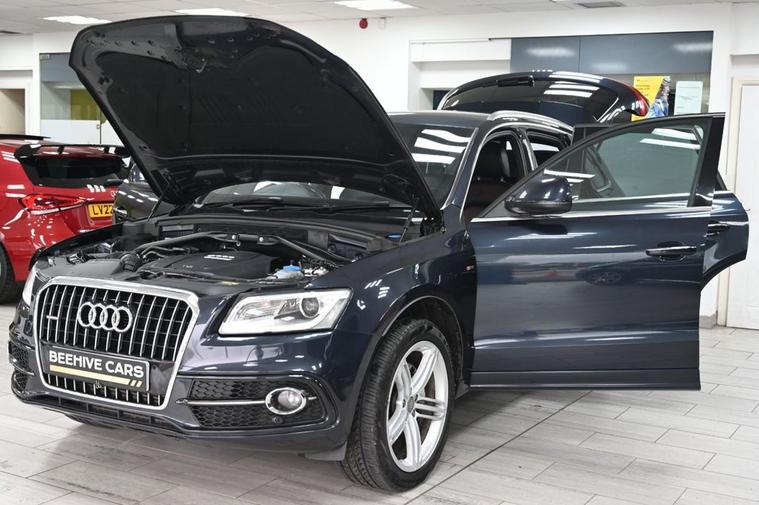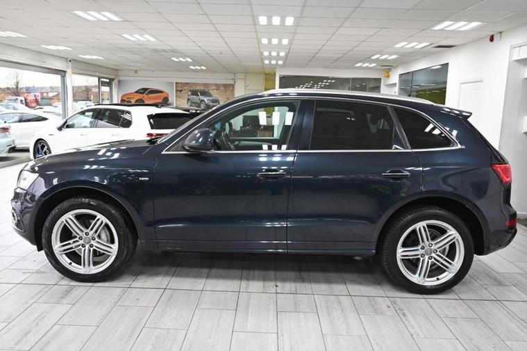 DRIVE AWAY TODAY OR HOME DELIVERY TO YOUR DOORSTEP FINANCE & PART EXCHANGE ARRANGED ONLINE** 7 DAY MONEY BACK GUARANTEE** Lovely spec Audi Q5 tdi quattro s-line plus suv in metallic blue with good service history also has had timing belt and waterpump done sat nav audi multi media dab radio bluetooth media full black s-line leather seats with armrest electric heated door mirrors front & rear parking aid sensors xenon lights flat bottom s-line steering wheel with f1 style paddleshifts electric push buitton tailgate alloys privacy