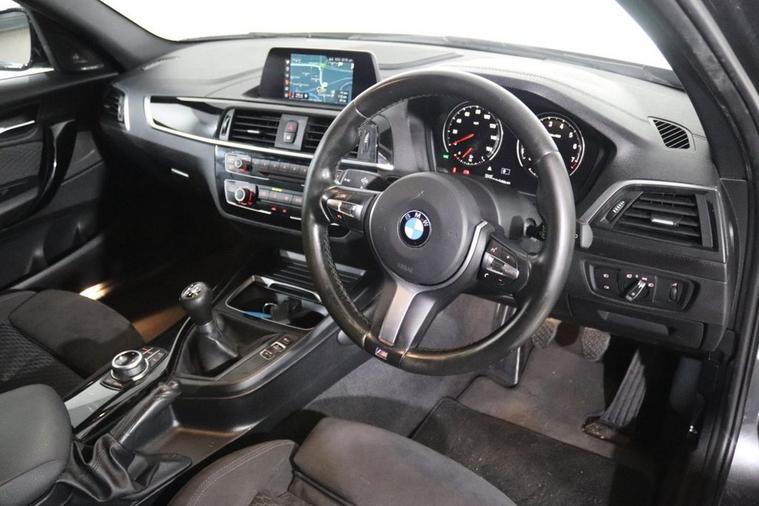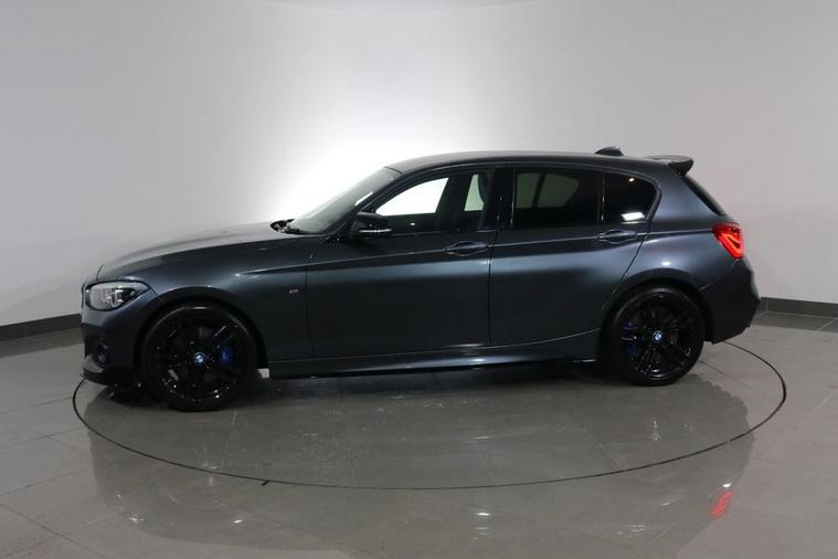 This desirable Euro 6 BMW 118i M Sport Shadow Edition finished in Mineral Grey looks fantastic complemented by Gloss Black M PERFORMANCE Body Kit, 18 inch Alloy Wheels, Rear Privacy Glass and Shadow Edition tail lights. Find your way with integrated SATELLITE NAVIGATION with LCD Display. Park in ease with REAR PARKING SENSORS. Keep connected with BLUETOOTH phone system with USB port. Listen to your music through DAB Digital Radio through HARMAN KARDON Sound System. Comfortable to drive with M SPORT Braking System, CLIMATE CONTROLLED AIR CONDITIONING and CRUISE CONTROL with Speed Limiting Function. Well equipped with Rain Sensor and Auto LED Headlights. Also fitted with Ambient Lighting, Drive Performance Control, ISOFIX seats, Multifunctional M Sport Steering Wheel, Alarm, Immobiliser and Remote Door Locking with 2 x keys. Buy in confidence with SERVICE HISTORY with 5 x Documented Services.