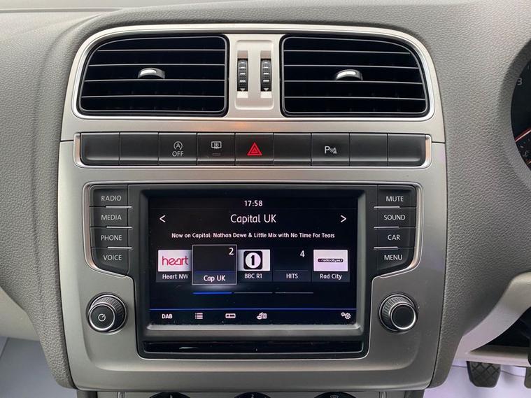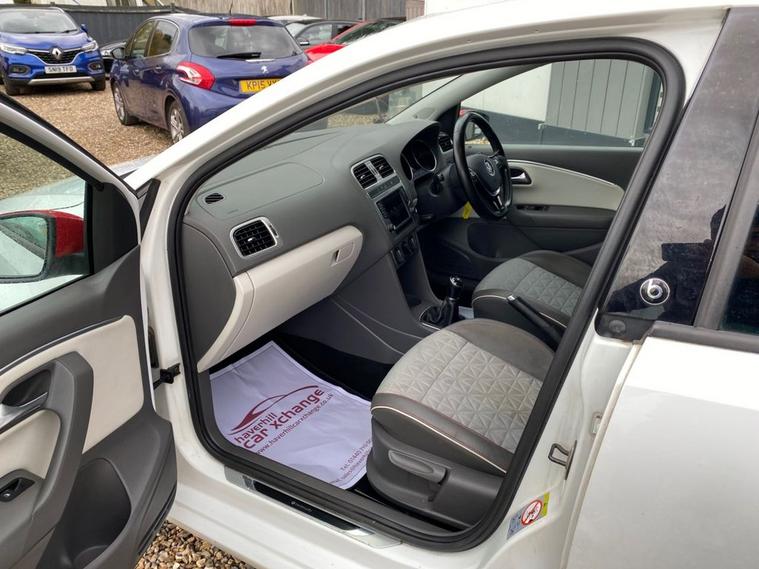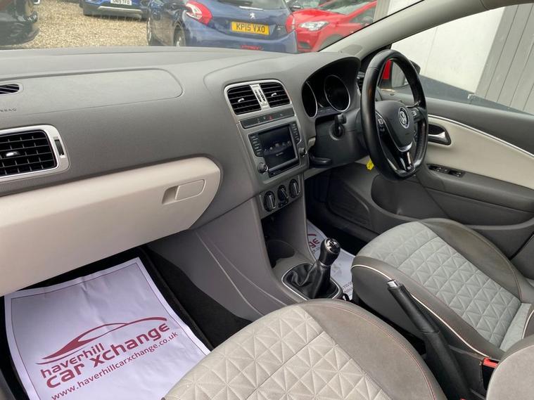 COMPOSITION MEDIA SYSTEM+AIR-CONDITIONING+CRUISE CONTROL+R-LINE STYLING PACK+FRONT ELECTIC WINDOWS+LED HEADLIGHT+FRONT & REAR PARKING ASSISTANCE+PURE WHITE PAINT WITH FLASH RED DOOR MIRRORS+16 INCH ALLOY WHEELS. At Haverhill Car Xchange we would like to offer you our Volkswagen Polo R-Line Hatchback which has been finished in a Pure White paint, Flash Red Door Mirrors and Titan Black-Grey Cloth Upholstery. Specification Includes a Composition Media System, Air-Conditioning, Cruise Control, Front Electric Windows, Body Coloured Bumpers/Door Handles and Rear Roof Spoiler, Flash Red Door Mirrors, R-Line Styling Pack, Front Sports Seats, LED Headlights, Front Fog Lights with Static Cornering Function, High Level 3rd Break Light, Front and Rear Parking Assistance, Multifunction Steering Wheel, Tinted Windows, 16 Inch Alloy Wheels, Speed Sensitive Power Assisted Steering, ABS Breaking System, Airbags, Alarm, Immobiliser, Remote Central Locking and ISOFIX Anchorage Points for Child Seats.