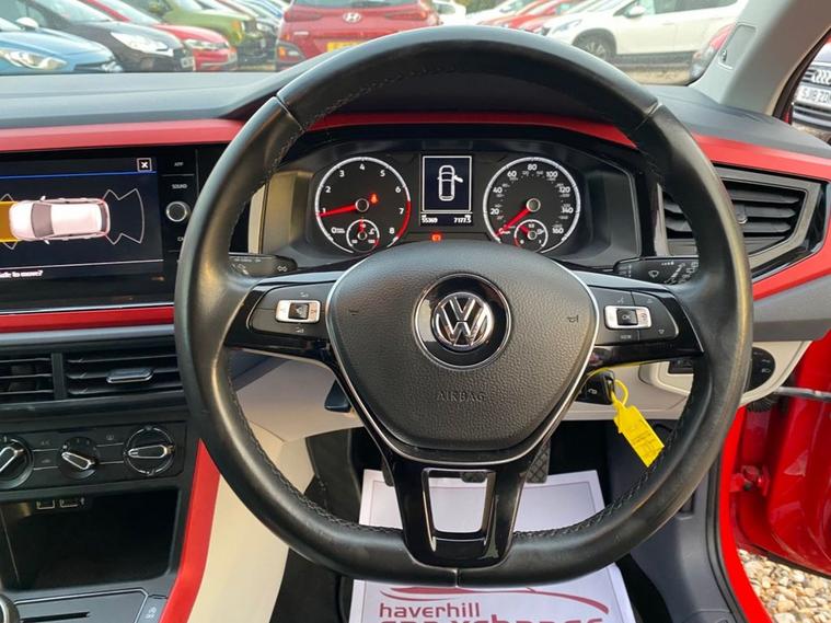 SPECIAL BEATS EDITION+55, 360 MILES+LONG MOT UNTIL 22.10.2026+COMPOSTION MEDIA SYSTEM+BEATS SOUND SYSTEM+AIR-CONDITIONING+AUTOMATIC HEADLIGHT ACTIVATION+FRONT & REAR PARKING ASSISTANCE+FLASH RED PAINT+16 INCH ALLOY WHEELS. At Haverhill Car Xchange we would like to offer you our Limited Edition Volkswagen Polo EVO Beats Hatchback, which features a powerful sound system and a sportier, more stylish design, finished in a Flash Red paint, Titan Black-Red Tracks 2 Cloth upholstery with Beats logo and Ceramique Edge Specification Includes a Composition Media System, Beats Sound System, Data Plug, Premium USB Cable, Air-Conditioning, Front and Rear Electric Windows, Body Coloured Bumpers/Side Sills/Door Handles and Heated/Folding Door Mirrors with Integrated Side Indicators, Black Radiator Grille with Chrome Trimmed Louvres, Automatic Halogen Headlights, LED Daytime Running Lights, Front Fog Lights with Cornering Function, High Level 3rd Break Light, Front Sports Seats, Front & Rear Parking Assistance, Multifunction Steering Wheel, Heated Rear Windscreen, Tinted Glass, 16 Inch Alloy Wheels, Speed Sensitive Power Assisted Steering, ABS Breaking System, Airbags, Alarm, Immobiliser, Remote Central Locking and ISOFIX Anchorage Points for Child Seats.