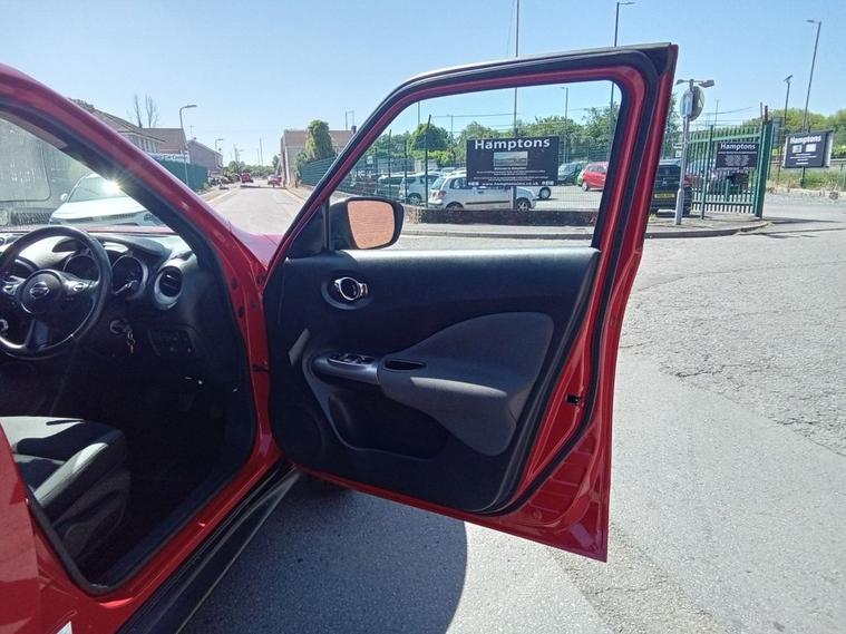 AN EXCEPTIONAL NISSAN JUKE 1.6 ACENTA SUV IN STUNNING FLAME RED WITH A NICE SPEC TO INCLUDE 16 ALLOYS, REAR PARKING SENSORS, LED DAYTIME RUNNING LIGHTS, LED FRONT FOG LIGHTS, (TPMS) TYRE PRESSURE MONITORING SYSTEM, REAR PRIVACY GLASS, NISSAN DYNAMIC CONTROL SYSTEM, AUTOMATIC CLIMATE CONTROL, RADIO CD AUDIO SYSTEM, AUX SOCKET FOR MP3 PLAYER, TELEPHONE-BLUETOOTH INTEGRATION, USB PORT+++++++++TO NAME A FEW!!! JUST 51, 200 MILES BY 2 x OWNERS WITH SECOND OWNER SINCE MAY 2021!!! SUPPLIED WITH FULL SERVICE HISTORY CONSISTING OF 6 x SERVICE STAMPS 3 x J&J NISSAN-2 x WESSEX GARAGES NISSAN-1 x SPECIALIST + INVOICES!!! & FULL BOOK PACK. THERE IS NO ADD ON CHARGES WITH THIS CAR THE PRICE INCLUDES A 6 MTH WARRANTY, MINIMUM 6 MONTH MOT & INDEPENDENT INSPECTION PRIOR TO DELIVERY! WE ARE A FAMILY RUN BUSINESS WITH MORE THAN 50 YEARS EXPERIENCE IN THE MOTOR TRADE! GO TO OUR WEBSITE FOR A FREE NO OBLIGATION QUOTE ON A PCP OR HP FINANCE DEAL!!! ALSO GET AN INSTANT ONLINE DECISION ON FINANCE ON OUR WEBSITE!!! ITS SIMPLE!!!