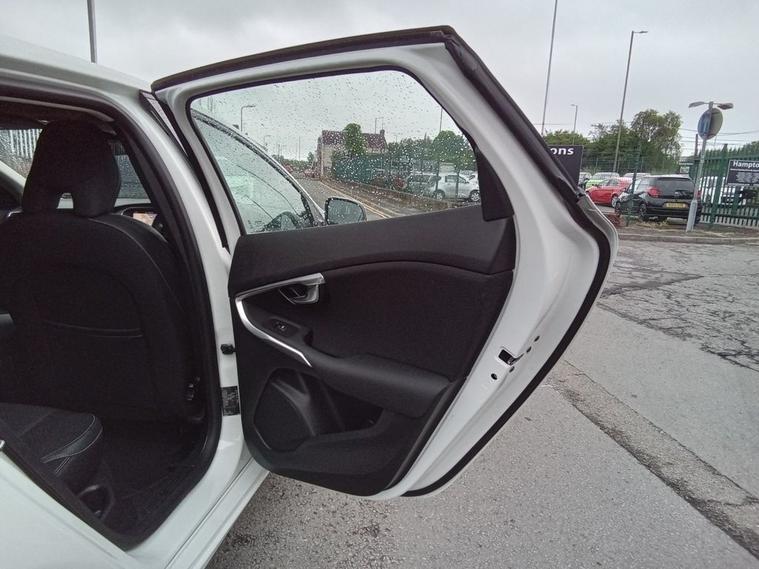 A STUNNING VOLVO V40 2.0 T2 R-DESIGN EDITION HATCHBACK 5 DOOR PETROL IN ICE WHITE WITH JUST 22, 047 MILES WITH FULL VOLVO SERVICE HISTORY CONSISTING OF 5 x SERVICE STAMPS!! A NICE SPEC CAR TO INCLUDE 18ALLOYS, AUTOFOLDING POWER DOOR MIRRORS WITH GROUND LIGHTS, ACTIVE BENDING HEADLIGHTS, AUTOMATIC LED HEADLIGHTS INCORPORATING DAY RUNNING LIGHTS, HOME SAFE AND APPROACH LIGHTING, HEADLIGHT CLEANING SYSTEM, CRUISE CONTROL, CITY SAFETY, FRONT & REAR PARK ASSIST, REAR PARK ASSIST CAMERA, HILL START ASSIST, (TPMS) TYRE PRESSURE MONITORING SYSTEM, RAIN SENSING AUTO WIPERS, DAB RADIO, SENSUS CONNECT WITH HIGH PERFORMANCE SOUND, SENSUS NAVIGATION, BLUETOOTH HANDSFREE SYSTEM++++++++TO NAME A FEW!! A LOVELY CAR THAT IS SUPPLIED WITH 2 x REMOTE KEYS & FULL BOOK PACK. THERE IS NO ADD ON CHARGES WITH THIS CAR THE PRICE INCLUDES A 6 MONTH WARRANTY, MINIMUM 6 MONTH MOT & INDEPENDENT INSPECTION PRIOR TO DELIVERY! WE ARE A FAMILY RUN BUSINESS WITH MORE THAN 50 YEARS EXPERIENCE IN THE MOTOR TRADE! GO TO OUR WEBSITE FOR A FREE NO OBLIGATION QUOTE ON A PCP OR HP FINANCE DEAL!!! ALSO GET AN INSTANT ONLINE DECISION ON FINANCE ON OUR WEBSITE!!! ITS SIMPLE!!!