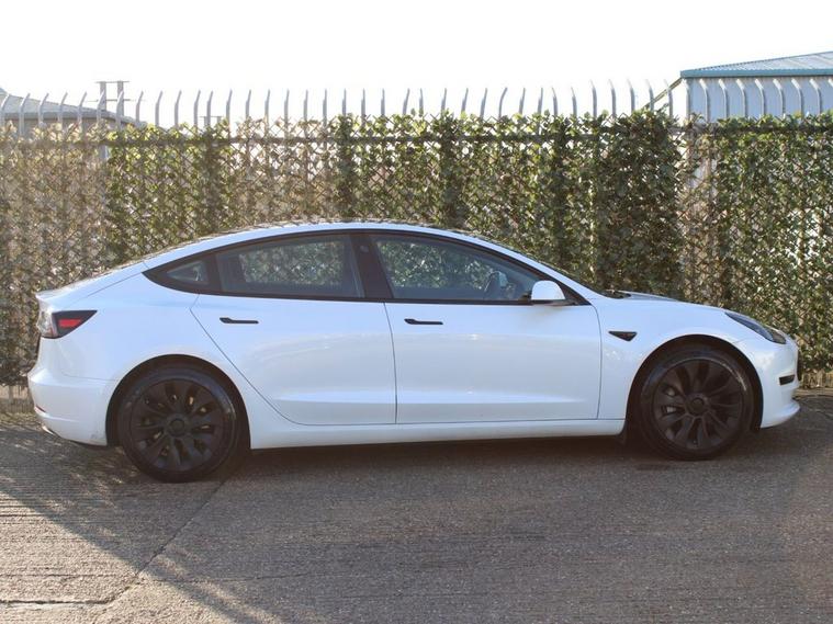 **91.5% BATTERY HEALTH** This 2021 Tesla Model 3 Standard Range Plus presents a superb ownership proposition, having been meticulously cared for by just one owner from new. As an all electric vehicle, it boasts a 53 kWh battery offering a maximum range of 278 miles when new. Charging is convenient, with a full charge at home using a 7kW charger taking approximately 7 hours and 10 minutes, while rapid charging to 80% from empty can be achieved in as little as 29 minutes at a public charging station. This Model 3 also features keyless entry and go, LED headlights for enhanced visibility, and heated front seats for comfort in all conditions. Adding to its appeal, this Tesla Model 3 includes front parking sensors to aid manoeuvrability and a fixed panoramic glass roof that creates a bright and airy cabin. These features, combined with its electric powertrain and impressive range, position this vehicle as a compelling choice for those seeking an advanced and efficient driving experience. The single owner history further underscores its excellent condition and desirability.
