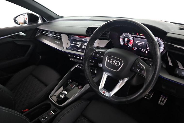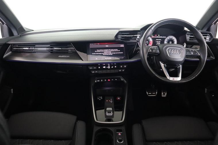 This 2023 Audi S3 TFSI Vorsprung offers an exhilarating driving experience with its impressive 0-62mph acceleration in just 4.8 seconds. This four wheel drive model is equipped with a powerful 2.0 litre petrol engine and meets Euro 6 emission standards. The Vorsprung trim level ensures a premium feel, enhanced by features such as Dual Zone Electronic Climate Control, Heated Front Seats for ultimate comfort, and advanced Audi Matrix LED Headlights with dynamic indicators and a headlight cleaning system. Connectivity is seamless thanks to the integrated Bluetooth Interface, and the Head Up Display keeps essential information within your line of sight. Beyond its performance, this Audi S3 provides practicality with its large boot space, making it suitable for both daily commutes and longer journeys. The inclusion of features like the Head Up Display and the sophisticated lighting system demonstrates a higher level of specification compared to other vehicles in its class. The heated front seats and dual zone climate control further elevate the comfort and convenience for all occupants, ensuring a pleasant environment regardless of the weather.