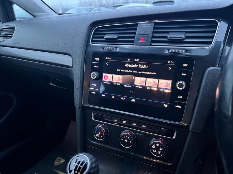 This Volkswagen Golf TSI SE Nav from 2018 boasts a full service history and has had only one owner, offering excellent provenance. This Euro 6 compliant model features a 1.4 litre petrol engine and comes with an MOT valid until November 2026. The SE Nav trim includes a Convenience Pack with automatic headlights, front and rear parking sensors for easier manoeuvring, and the Composition Media System with Bluetooth connectivity. For seamless integration with your digital life, it also features Car Net App Connect, supporting both Android Auto and Apple CarPlay. Experience impressive performance with this Golf, achieving 0 to 60 mph in just 8.8 seconds, demonstrating its capability compared to other vehicles in its class. Furthermore, its fuel economy is a notable highlight, achieving an excellent 54 miles per gallon, making it an economical choice for your journeys. Adaptive Cruise Control is also included, enhancing your driving experience on longer trips.