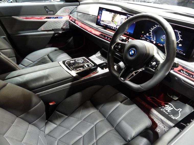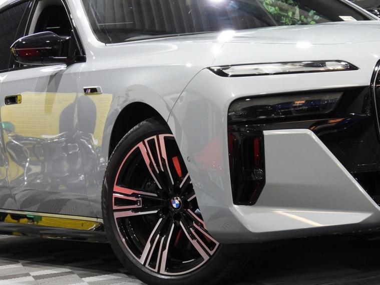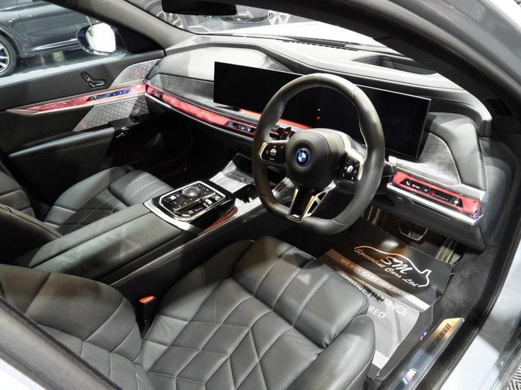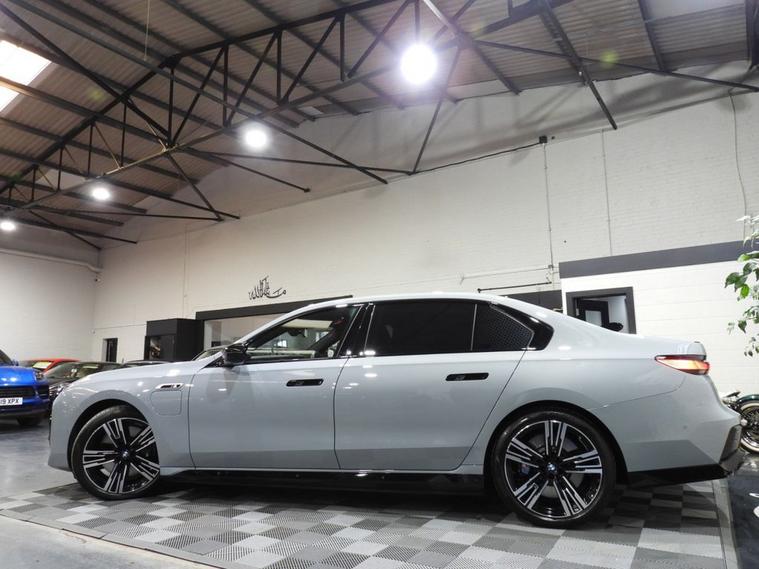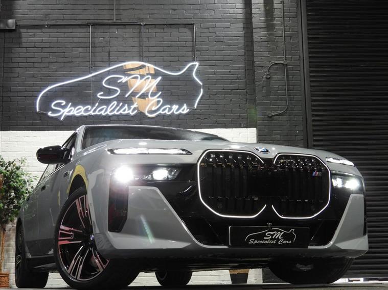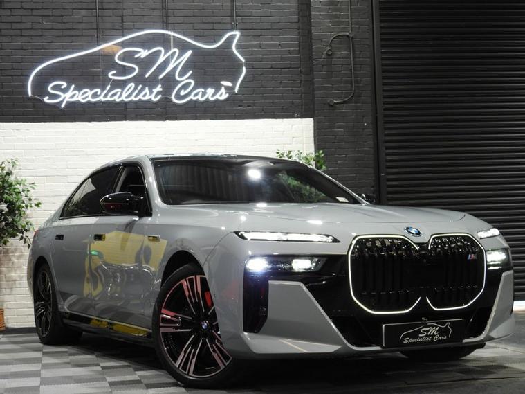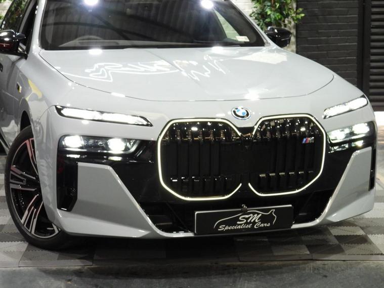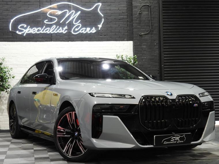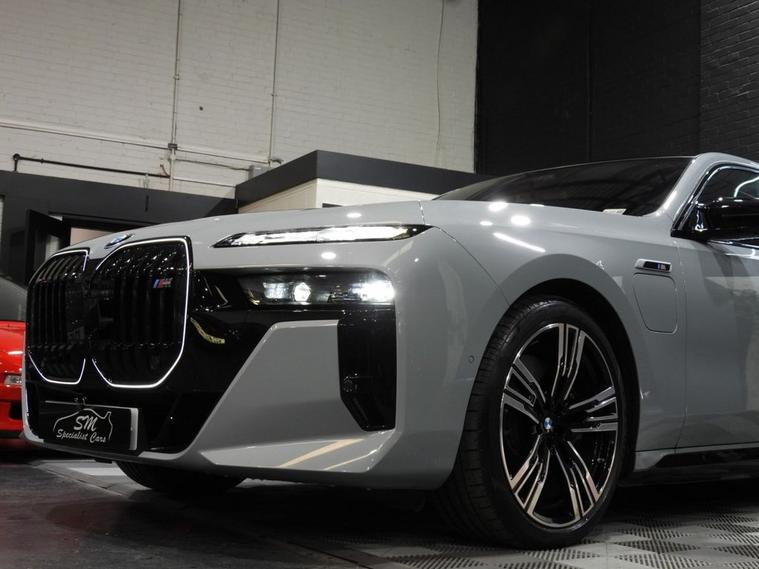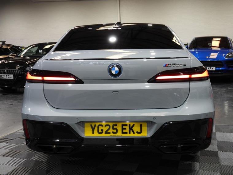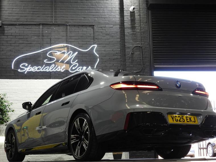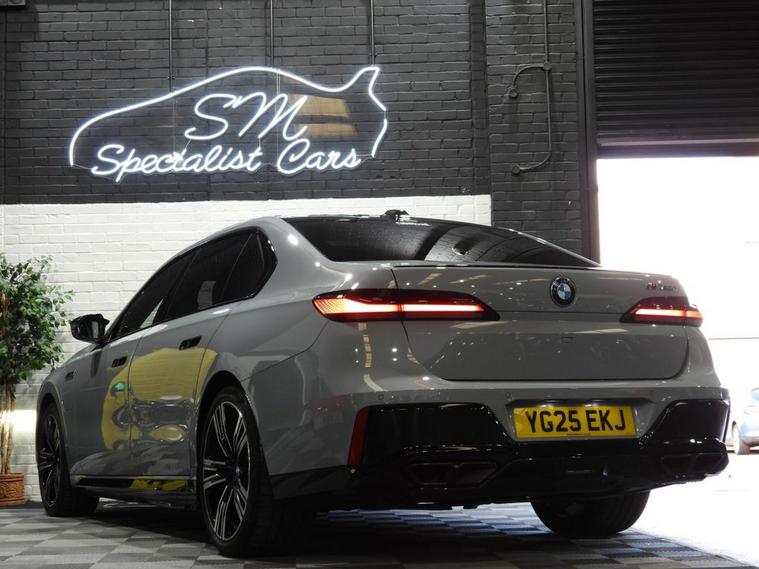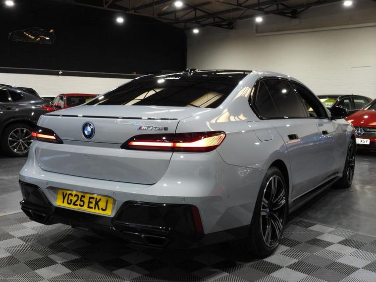 VAT QUALIFYING - This 2025 BMW 7 Series M760e presents a remarkable opportunity with only 5000 miles on the clock, having been owned by just one person. This plug in hybrid model boasts a powerful 3.0 litre petrol engine and a four wheel drive drivetrain, meeting the Euro 6 emission class. It comes equipped with the Ultimate Package, featuring LED headlights, a luxury branded sound system, an opening panoramic sunroof, and comprehensive parking assistance with front and rear sensors and a front camera. Further enhancing the driving experience are the Iconic Glow Crystal Headlights and automatic front and rear doors, complemented by the exceptional Bowers and Wilkins Surround Sound System. The M760e variant offers a truly elevated driving experience, highlighted by its impressive acceleration from 0 to 60 miles per hour in just 4.3 seconds, demonstrating its superior performance compared to other vehicles in its class. The inclusion of the Driving Assistant Professional package, with adaptive cruise control and advanced parking assistance, ensures both comfort and safety. Furthermore, the generous boot space provides practicality for everyday use and longer journeys, making this BMW 7 Series a well rounded and desirable vehicle. VAT QUALIFYING - 1 OWNER FROM NEW - ULTIMATE PACK - EVERY OPTION ON THIS VEHICLE - 21 Style 908 M Star-spoke Alloy Wheels | Ultimate Pack | Iconic Glow Kidney Grille | BMW Individual Interior | Front Massage Seats | Rear Massage Seats | Sky Lounge Panoramic Glass Sunroof | Sun Protection Glass | VAT Qualifying Vehicle - Drives & performs like new - First to see will buy!