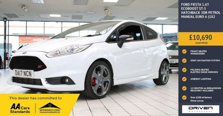 FORD FIESTA 1.6T ECOBOOST ST-3 HATCHBACK 3DR FINISHED IN FROZEN WHITE AND COMPLIMENTED WITH RECARO PART LEATHER INTERIOR, THIS VEHICLE HAS BEEN VERY WELL CARED FOR AND MAINTAINED WITH DOCUMENTED SERVICES CARRIED OUT AT 4624, 11394, 17906, 20856, 23212, 33914 PLUS COMPREHENSIVE PRE DELIVERY HEALTH CHECK AND SERVICE COMPLETED PRIOR TO SALE AT 41009 MILES. KEY FEATURES INCLUDE ALLOY WHEELS, AMBIENT LIGHTING, AUTOMATIC LIGHTS WITH AUTO DIMMING, CRUISE CONTROL, ELECTRIC FOLDING HEATED DOOR MIRRORS, IMMOBILISER, FORD POWER STARTER BUTTON, GEARSHIFT INDICATOR, HEATED WINDSCREEN, REAR PRIVACY GLASS, SONY NAVIGATION SYSTEM, DAB AND FORD SYNC, ST COVENIENCE PACK, UNIQUE ST STYLING KIT WITH LARGE SPOILER, ALARM PLUS MUCH MORE. COMMITTED TO AA CARS STANDARDS: 3 MONTHS OR 3000 MILES WARRANTY INCLUDED WITH AN OPTION TO UPGRADE: 12 MONTHS AA BREAKDOWN RECOVERY INCLUDED: £75.00 CONTRIBUTION TOWARDS YOUR NEXT SERVICE/MOT AT ANY AA CARS STANDARD APPROVED WORKSHOP: WE STAND BY THE QUALITY OF OUR VEHICLES. WITH THE PURCHASE OF THIS VEHICLE, YOU WILL RECEIVE 3 MONTHS OR 3000 WARRANTY, 12 MONTHS AA BREAKDOWN RECOVERY, GIVING YOU ADDITIONAL PEACE OF MIND AND PROTECTION. ALL OUR CARS COME WITH AT LEAST 6 MONTHS MOT AND PRE SALE HEALTH CHECK AND ROAD TEST. OUR PROFESSIONAL TEAM ENSURES YOUR VEHICLE STAYS IN TOP CONDITION, AND YOU ENJOY A HASSLE-FREE OWNERSHIP EXPERIENCE. 4.6 STARS ON GOOGLE WITH OVER 550 REVIEWS: JOIN OUR COMMUNITY OF SATISFIED CUSTOMERS! OUR DEALERSHIP IS PROUD TO HAVE A 4.6 STAR RATING ON GOOGLE, BACKED BY OVER 550 POSITIVE REVIEWS. WE ARE COMMITTED TO PROVIDING EXCELLENT SERVICE AND HIGH-QUALITY VEHICLES. This Vehicle Comes Equipped with High Specification, Which Includes: -
