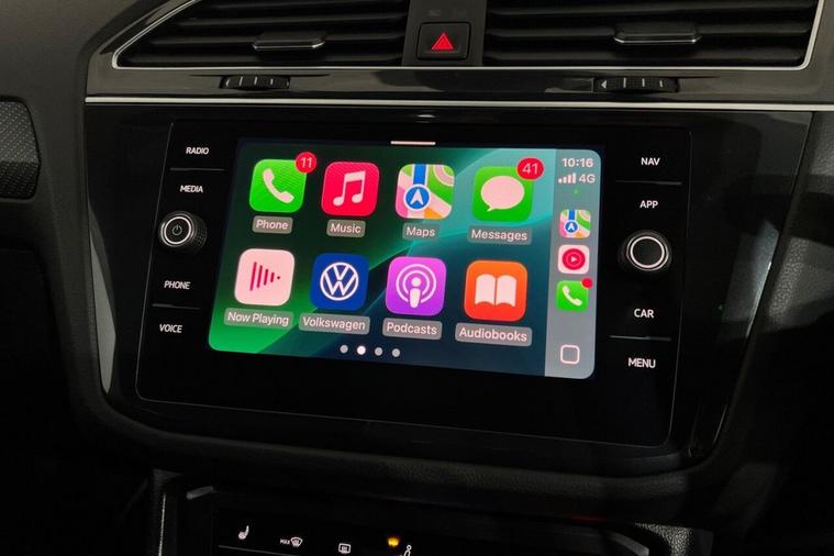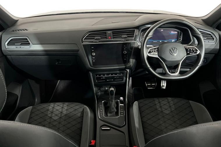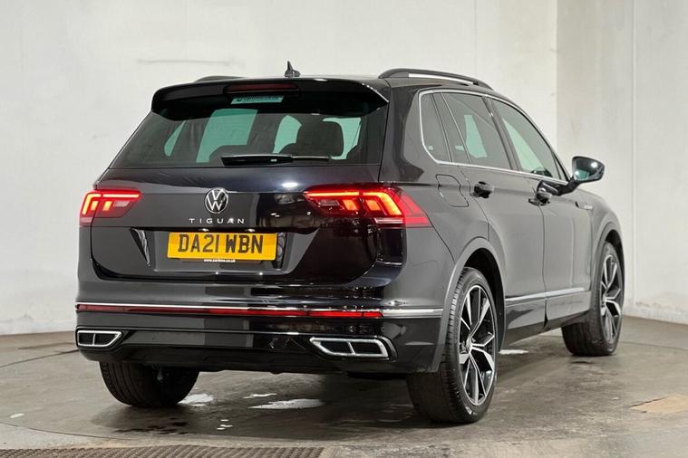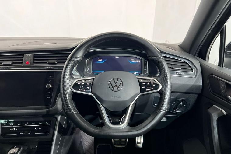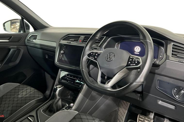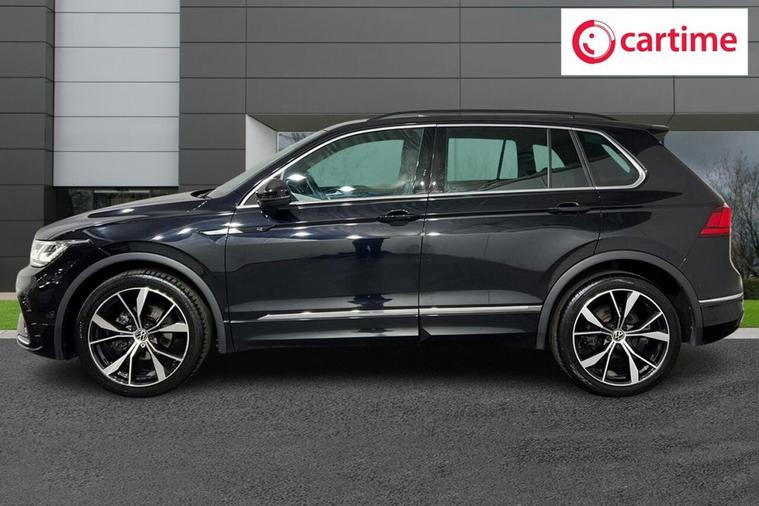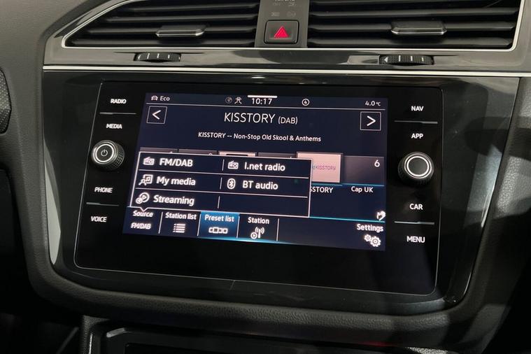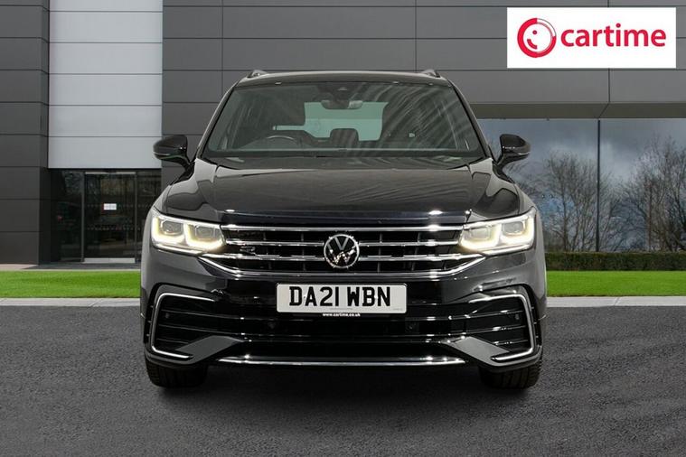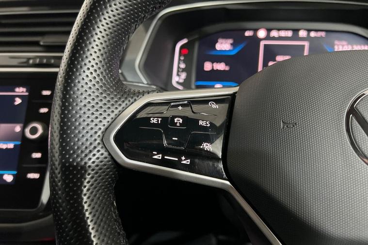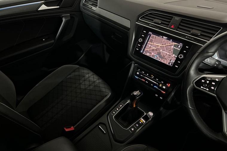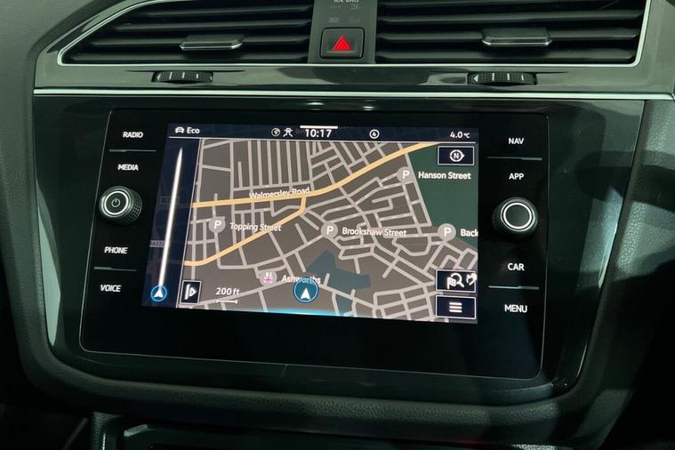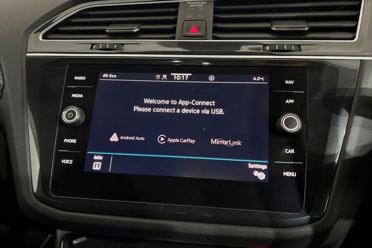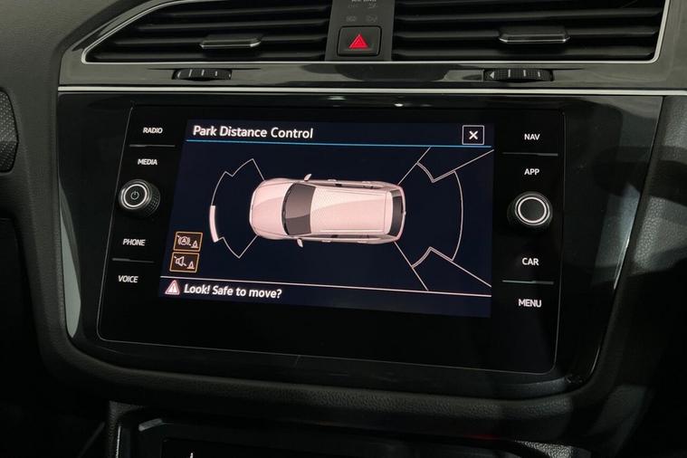 Finished in a stunning Deep Black paint finish, this Tiguan crossover SUV has automatic headlights with LED daytime running lights, front underbody protection and rear diffuser, distinctive 20-inch alloy wheels, tinted windows and silver roof rails. Inside there is an unmarked black and grey cloth interior which also has alloy look trim, ambient lighting and a leather trimmed multi-function steering wheel. With a high specification the car has a Discover Navigation touch-screen satellite navigation/infotainment system. The system offers Volkswagen Media Control2, allowing remote control of the infotainment system via a smartphone, and preloaded European navigation data, 2D/3D map view which can be easily followed on the 8.0-inch colour touchscreen in the centre of the dashboard. Multimedia includes a DAB digital radio, CD player and connectivity for Bluetooth, USB and AUX devices. Also, there are apps with Apple CarPlay, Android Auto and MirrorLink. Additional equipment with this car includes dual-zone climate control, front and rear parking sensors, adaptive cruise control with speed limiter, Stop/Start Engine System, electric heated power-fold door mirrors and daytime running lights.