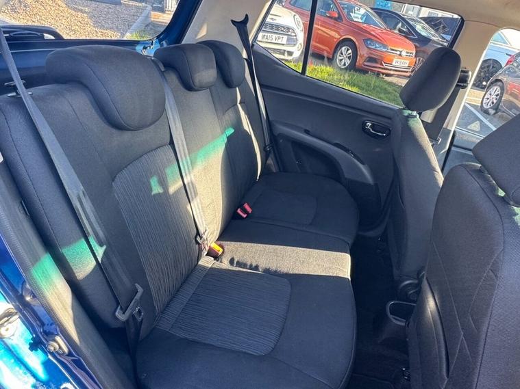 Hyundai i10 1.2 Style Hatchback 5dr Petrol Manual Euro 5 (85 bhp) 2012 1.2L petrol engine (85 bhp) nippy, efficient, and ideal for town or motorway driving. Manual gearbox smooth and easy to drive. Style trim with great spec and sporty touches. Alloy wheels, front fog lights, and body-coloured mirrors/handles. Air conditioning, electric windows, and heated mirrors. Bluetooth connectivity, CD/MP3 player, and USB/AUX input. 5 doors practical for families or everyday commuting. Excellent fuel economy up to 60+ MPG. Low insurance group perfect for new or city drivers. A well-maintained 2012 Hyundai i10 Style reliable, economical, and easy to drive. Perfect first car or daily runaround with low running costs, cheap insurance, and great fuel efficiency.