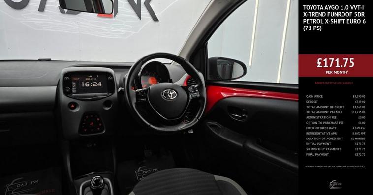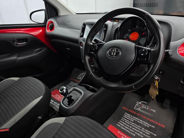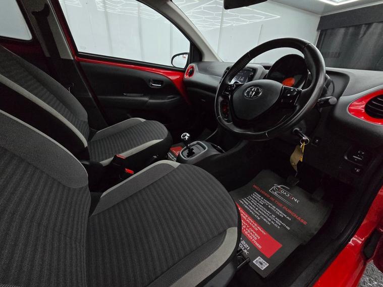 This Toyota Aygo 1.0 VVT-i X-Trend Funroof Auto is stylish, compact, and easy to drive ideal for city use. It comes with 15 black machined alloys, reversing camera, Apple CarPlay/Android Auto, LED daytime lights, privacy glass, and a funroof for added style. Inside, you get air conditioning, DAB radio, Bluetooth, and a leather steering wheel. Economical, low insurance, and effortless to park perfect for new drivers or city commuters.