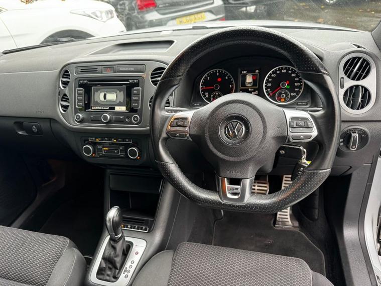 Stunning Condition VW Tiguan 4WD AUTO in Reflex Silver with 17 Alloys. Only 40, 000 miles and a full service history. Spec includes SAT NAV, Front/Rear parking sensors, Multi-function steering, power folding wing mirrors, seatback tables, auto headlights, DAB radio, Bluetooth, Climate control, Air Con and much more. Call 01138032773 or visit dealer's website