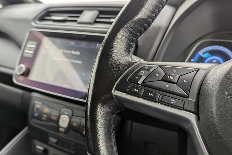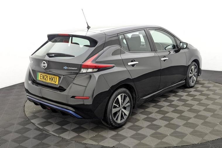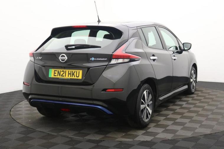 Henson Car Store presents the NISSAN LEAF 40kWh Acenta Hatchback 5dr Electric Auto (150 ps) finished in Black, this car comes with service history and is VAT qualifying. This 2021 Nissan Leaf Acenta has been cherished by just one owner since new, offering a superb example of this popular electric vehicle. As an electric car, it boasts a 40 kWh battery providing a maximum range of 168 miles when new. Charging is convenient, with a full charge at home using a 7kW charger taking approximately 7 hours and 30 minutes. For quicker top ups, a rapid public charge can take the battery from empty to 80% in around 1 hour and 20 minutes. The Nissan Leaf Acenta stands out with its generous boot space, offering ample room for shopping, luggage, or equipment. This practical feature, combined with its efficient electric powertrain and single owner provenance, makes this Leaf a compelling choice for those seeking an economical and user friendly driving experience. Its design and features are geared towards everyday usability, making it a sensible option for commuting and general travel.