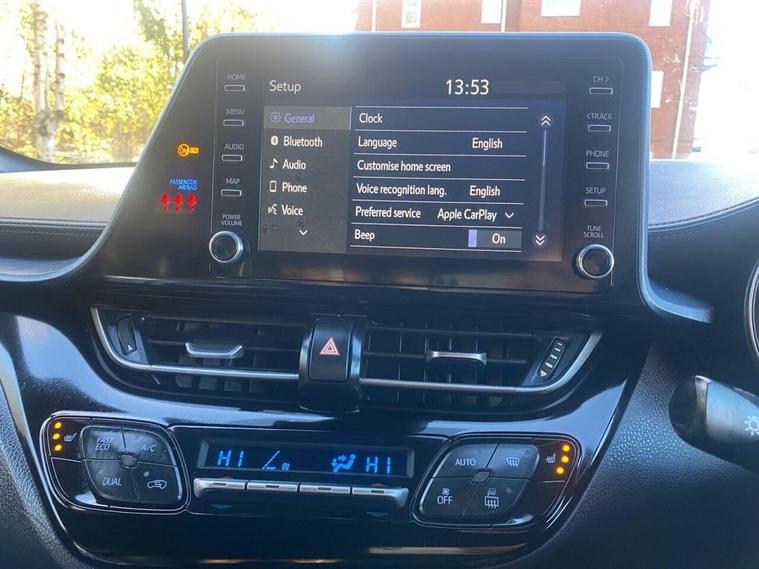 One previous owner, full main-dealer service history, MOT valid until 17 November 2026. Clean, economical, ULEZ-compliant petrol-hybrid with smooth automatic transmission. A well-maintained and efficient vehicle, ideal for both city and motorway driving. Discover this 2021 Toyota C-HR VVT-h Design, a stylish and efficient hybrid that's ready for your next adventure. This Euro 6 compliant model boasts a smooth 1.8L petrol hybrid engine, offering an impressive fuel economy of 58 miles per gallon. Inside, you'll find a comfortable cabin featuring heated driver and front passenger seats, perfect for those cooler mornings. The Design trim also includes Smart Entry and Push Button Start for effortless access and ignition, alongside the Toyota Touch 2 Multimedia System with a 7 inch display that seamlessly integrates with Android Auto and Apple CarPlay, keeping you connected on the go. This Toyota C-HR stands out with its low CO2 emissions and low insurance group, indicating it's a more economical choice compared to similar vehicles. The inclusion of Adaptive Cruise Control enhances your driving experience by automatically adjusting your speed to maintain a safe distance from the vehicle ahead, while Auto Headlights ensure optimal visibility by activating when light levels drop. These thoughtful features combine to make this C-HR a practical and appealing option for any driver.
