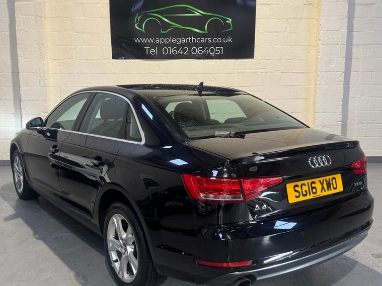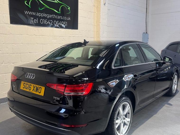 Sales Pitch Audi A4 1.4 TFSI Sport Saloon 4dr Petrol Manual Euro 6 (s/s) (150 PS) SG16XWO Experience the perfect balance of sophistication, performance, and efficiency with this 2016 Audi A4 1.4 TFSI Sport Saloon. Finished in timeless black and complemented by Audis renowned build quality, this premium saloon offers both dynamic driving and executive comfort. With just 76, 900 miles and three careful owners, this A4 has been well-maintained and represents excellent value for anyone seeking German engineering at its best. Powered by a 1.4-litre TFSI petrol engine producing 150 PS, it delivers smooth, responsive performance while remaining efficient and compliant with Euro 6 emissions standards. The 6-speed manual gearbox provides an engaging driving experience, ideal for both city and motorway journeys. Inside, the Sport trim adds refinement and comfort throughout, featuring high-quality materials, supportive sport seats, and Audis intuitive MMI infotainment system with Bluetooth connectivity. The spacious saloon layout ensures comfort for all passengers, while the generous boot space makes it practical for everyday use. Key features include: Audi Drive Select for customizable driving modes Dual-zone climate control 17-inch alloy wheels LED daytime running lights DAB digital radio and Bluetooth audio streaming Cruise control and rear parking sensors Sport interior styling and trim detailing This A4 combines elegant styling with efficiency, reliability, and an engaging drive a true all-rounder in the premium saloon segment. Dont miss this opportunity to own a well-presented Audi A4 Sport that delivers quality, style, and performance in one impressive package. Contact us today to arrange a test drive or to find out more about this exceptional Audi A4 1.4 TFSI Sport Saloon.