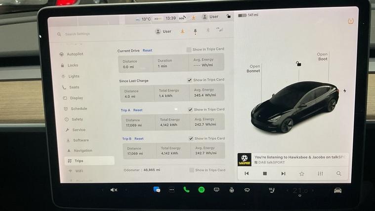 This 2021 Tesla Model 3 Long Range has had only one owner since new, offering a pristine example of this popular electric vehicle. As a Long Range variant, it boasts a substantial 78 kWh battery, providing an impressive maximum range of 360 miles when new. This Four Wheel Drive model is powered entirely by electricity, with a full charge at home using a 7kW charger taking approximately 12 hours. For quicker top ups, it can reach 80% charge in just 26 minutes at a compatible public charging station. The vehicle is in excellent condition, with a long MOT. Notable features include Adaptive Cruise Control, front and rear parking sensors for effortless manoeuvring, and dual zone climate control with air conditioning to ensure comfort for all occupants. The Tesla Model 3 Long Range stands out with its exceptional performance, accelerating from 0 to 60mph in a swift 4.2 seconds, a testament to its electric powertrain. This acceleration capability places it ahead of many comparable vehicles. Furthermore, the generous boot space offers practicality for everyday use and longer journeys, making it a versatile choice. The 360 mile range from new is a significant advantage, allowing for extensive travel between charges and reducing range anxiety.