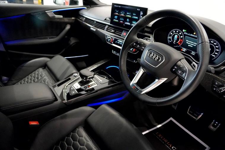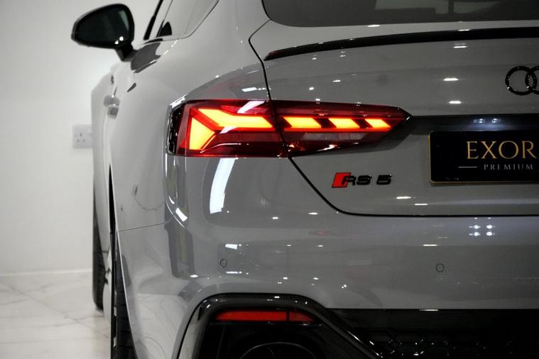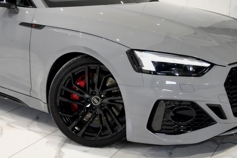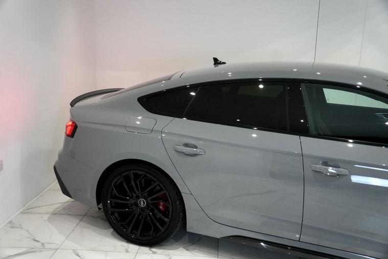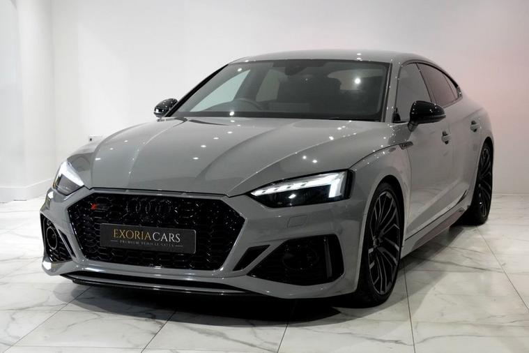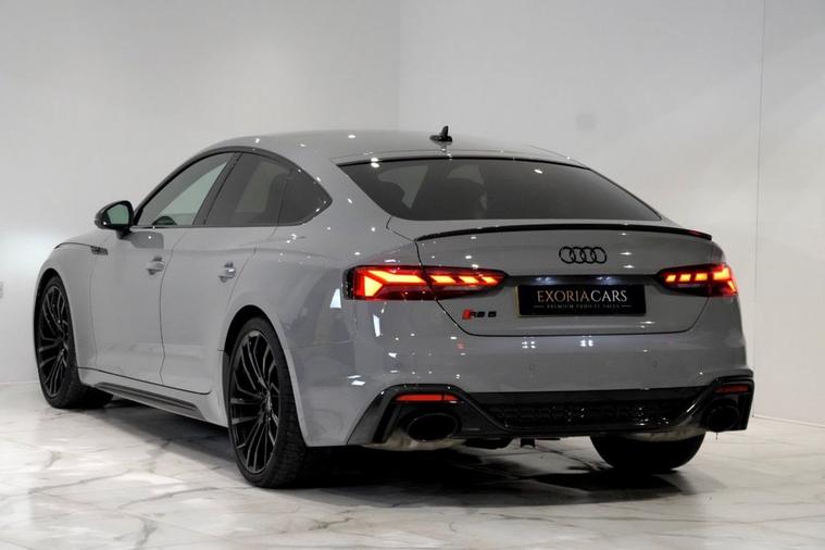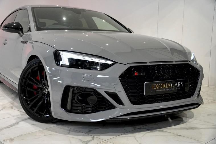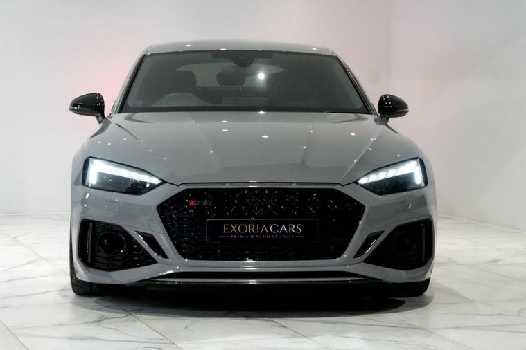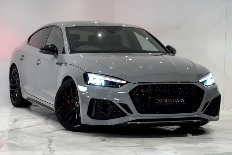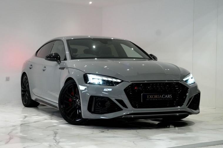 Exoria Cars are pleased to offer this AUDI RS5 2.9 TFSI V6 Carbon Black Sportback 5dr Petrol Tiptronic quattro Euro 6 (s/s) (450 ps) registered on the 08/11/2023. This particular model is presented in Nardo Grey featuring 20in Alloy Wheels - Segment-Spoke Evo Style Design in Glossy Black Audi Sport. This vehicle has many optional spec extras. These include (but are not limited to) Bang & Olufsen Surround Sound Speakers, Heads Up Display, RS Sports Exhaust System, Fine Nappa Leather - RS Super Sports with Pneumatic Massage Function - Black with Rock Grey Honeycomb Contrast Stitching, 360* Camera, LED Interior Light Package, Audi Matrix LED Headlights with LED Rear Lights and Dynamic Front and Rear Indicators, active safety features and much more. For full details please do enquire via email or phone. This vehicle comes with 2 keys, Full Audi Service History (recent service 11/2025), a full (clear) HPI check and AUDI WARRANTY UNTIL AUGUST 2026.) All 5* reviews on all platforms giving you peace of mind with your new purchase! PCP and HP finance available from 9.9% APR (subject to status). AA Checks/RAC Checks are welcome! Any used car purchase also qualifies for a free interior and exterior deep clean detail worth £400 with our partnered company DD Detailing who are one of the largest detailing companies in the UK. This vehicle is ready to drive away today!