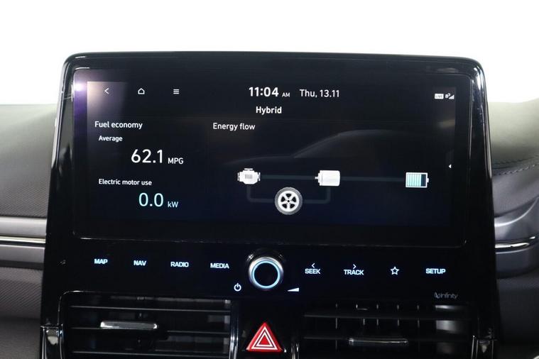 This 2021 Hyundai IONIQ h-GDi Premium is a standout example, having been cherished by just one owner from new and boasting exceptionally low mileage of only 31427 miles. This Euro 6 compliant 1.6L Petrol Hybrid offers an impressive fuel economy of 63 mpg, making it an economical choice for your daily journeys. Inside, you'll find a host of thoughtful features designed for comfort and convenience, including heated front passenger seats, a heated steering wheel, and a wireless phone charging pad. Stay connected and entertained with Apple CarPlay integration, and navigate tight spaces with ease thanks to the rear camera and guidance system. The Hyundai IONIQ h-GDi Premium truly shines with its exceptional highlights. Its low CO2 emissions and low insurance group indicate that running costs are kept to a minimum, setting it apart from many other vehicles in its class. Furthermore, the generous boot space ensures you have ample room for shopping or luggage, making it a practical and versatile option. This well maintained, low mileage hybrid represents excellent value and a smart choice for those seeking efficiency and comfort.