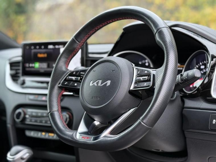 Here for sale at Leigh Cars Ltd we are delighted to present this superb ULEZ EXEMPT high specification example of the KIA ProCeed 1.6 T-GDI GT Shooting Brake 200bhp petrol estate automatic finished in stunning black metallic paint. It comes with full service history - 3 stamps last completed in December 2025. It also comes with a brand new advisory free MOT - expiry December 2026. This fine example benefits from the KIA manufacturer warranty until 2029, so peace of mind is included free of charge! This superb estate is packed with every bit of specification you will ever need on a car. These include half black leather interior, heated front seats, heated steering wheel, front and rear parking aid, rear parking camera, keyless entry + start, 10.25 touchscreen infotainment system with satellite navigation, Park Assist, Apple car Play + Android Auto, Wireless Phone Charging, Voice Command, DAB radio, bluetooth + audio streaming, USB + AUX, cruise control, dual zone climate controlled climate controlled air conditioning, auto lights + wipers, electric windows, electric mirrors, power folding mirrors, alloy wheels, remote central locking, 2 keys + much much more. This amazing 5 door petrol estate would be ideal for any growing family as it comes with an abundance of space, practicality and specification for all those family requirements. The road tax is £195 and it produces 41.5mpg average fuel consumption and is also ULEZ charge exempt. Book in your click & collect or nationwide delivery online. ** Viewing is strictly by appointment only ** As we are an AA accredited dealer you will receive 12 months complimentary AA roadside assistance. AA warranty packages available up to 2 years and superb low rate zero deposit finance deals available today. Why not give us a call or visit our website finance calculator to see how affordable your new car could be. We are rated 5 stars by our customer reviews on Autotrader, Facebook, Google and Car Gurus so you can be assured you are dealing with a company that truly cares about the customer. We take great pride in providing a personal quality service like no other and guarantee to make your purchase a smooth and pleasant experience. Please read our customer reviews online to see what they have to say about the level of service they received from us when purchasing a car. We have recently been awarded with the accolade of Car Gurus Top Rated Dealer 2023 (6th year in a row) - Buy Your Car From The Best In Essex. Click & collect + nationwide delivery available with 14 day money back guarantee - ** Viewing is strictly by appointment only **