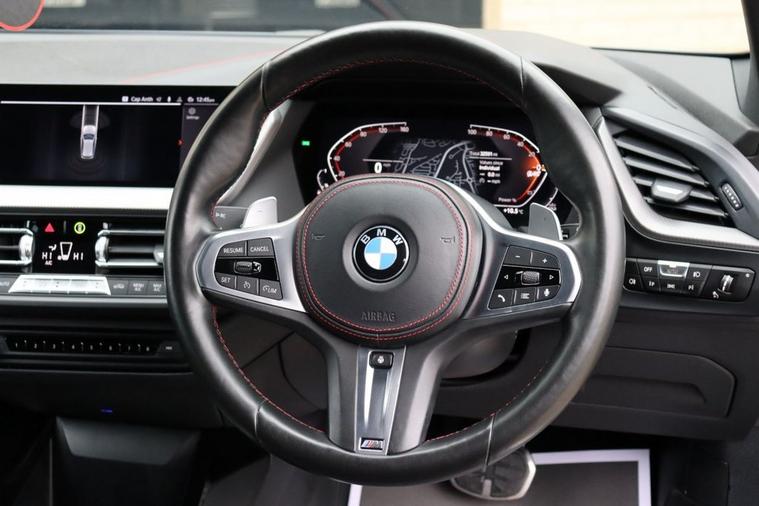We are delighted to offer this low mileage, 2021 BMW 128ti 2.0 which is finished in Storm Bay. Our example has had 1 owner from new, only covered 32, 000 miles and comes with a great specification which includes: Heated Steering Wheel, Heated Front Seats, Front & Rear Parking Sensors, M Performance Style Body Kit, 18 Gloss Black Alloys, M Sport Brakes with Red Calipers and BMWs Live Cockpit Professional.