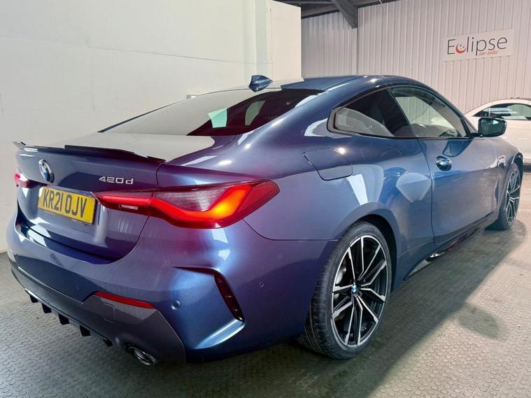 **THIS VEHICLE MAY BE AT OUR 150-CAR STORAGE FACILITY. PLEASE CALL AHEAD TO ARRANGE VIEWING AT OUR WINCHESTER SALES SITE** MOT August 2026. This stunning BMW 420d is the perfect option for anyone looking for a sporty, stylish upgrade. Finished in Arctic race blue with a black and blue leather interior and 19 inch alloy wheels. Equipped with various features to make every drive enjoyable such as a heads up display, premium harman kardon sound system, three zone automatic air conditioning, cruise control with brake function and more. Powered by a 2 litre diesel hybrid engine and an automatic gearbox.