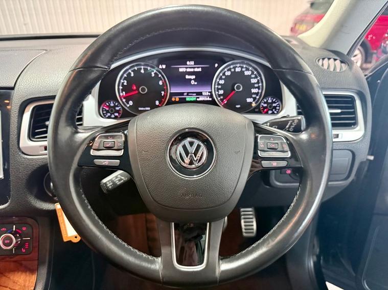 **THIS VEHICLE MAY BE AT OUR 150-CAR STORAGE FACILITY. PLEASE CALL AHEAD TO ARRANGE VIEWING AT OUR WINCHESTER SALES SITE** New MOT upon sale. Serviced at 10k, 20k, 30k, 35k, 43k, 52k, 58k, 66k, 76k, 82k, 87k, 92k miles and will be serviced again by us upon sale. This well looked after VW Touareg is perfect for anyone looking for an upgrade to space and comfort. Equipped with various features such as dual zone climate control, heated front seats, cruise control, front and rear parking sensors and more. Finished in black with a vavona wood trim interior along with 19 inch alloy wheels and powered by a 3 litre v6 petrol hybrid engine and an automatic gearbox.
