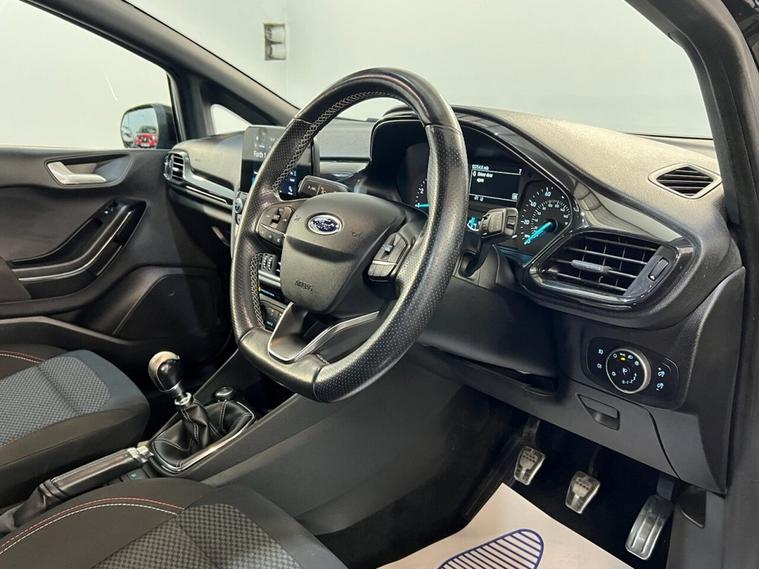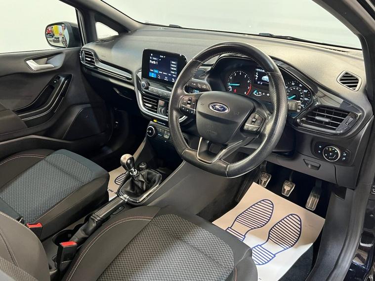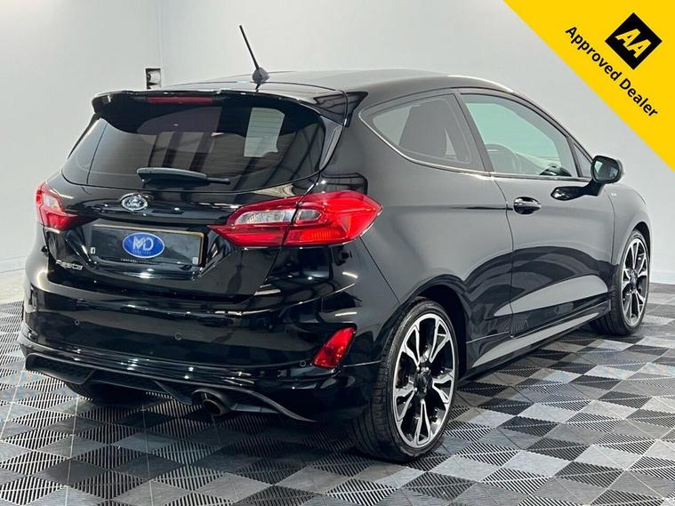 MD CarStore are proud to showcase this stunning Ford Fiesta ST-Line having covered only 53, 754 miles and hosting a fantastic specification including Apple CarPlay / Android Auto, USB Connection, Bluetooth Telephone Connection, 18-inch Uniquely Styled and Freshly Refurbished Diamond Turned Alloy Wheels, LED Daytime Running Lights, Privacy Glass, Rear Parking Sensors, plus so much more. The Fiesta looks great on the road with its sports styling and Sports interior. Complete with a documented service history record, a fresh service, a new MOT, complete book pack, 2 keys and 12 months AA Roadside Assistance. This Ford Fiesta is a sporty super mini combining style, comfort and economy with a modern range of features and very rare to the market given its history and low miles. With a low insurance group and low running costs this car will make a great addition to any household looking for cost effective motoring without compromising on style and specification or will certainly be suited to the younger driver and all whilst being able to achieve 65+ MPG combined/. We offer top prices for all part exchange vehicles and finance available to suit all budgets and criteria. *This car is also ULEZ COMPLIANT* Contact us today to discuss your finance options or apply directly on our website. We have a large panel of lenders available and can cater for all circumstances and credit history. Representative APR 9.9%. Apply directly with us for the best options available. **We operate on an appointment only basis for your convenience so please contact us in advance of your visit to avoid disappointment**