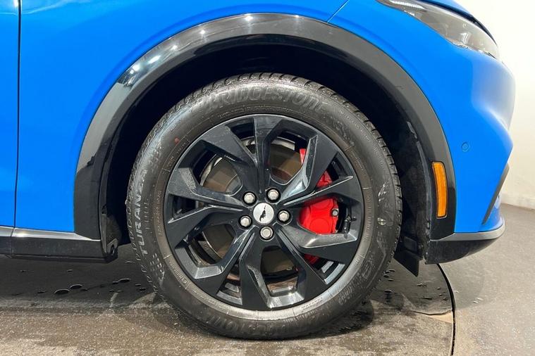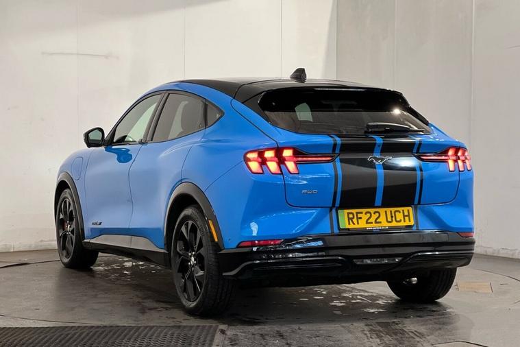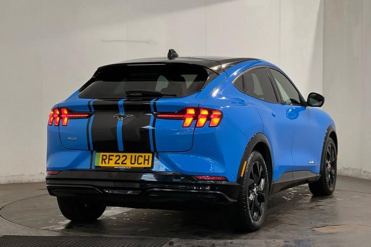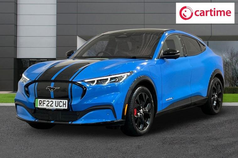 This 2022 Ford Mustang Mach-E Extended Range boasts exceptionally low mileage for its age, having covered just 18, 037 miles, and has had only one owner from new, with a clear vehicle history check. This electric four wheel drive model features a substantial 99 kWh battery, offering a maximum range of 335 miles when new. Inside, youll find a wealth of technology and comfort, including a 360 Degree Camera with parking assistance, the Tech Pack Plus which incorporates an opening panoramic sunroof and a premium branded sound system, heated driver and passenger seats, dual zone electronic automatic climate control, and a convenient wireless device charging pad. Experience impressive performance with this Mustang Mach-E, accelerating from 0 to 60mph in a swift 5.8 seconds, a figure that highlights its dynamic capabilities compared to many other electric vehicles. Charging is efficient, with a full charge at home on a 7kW charger taking approximately 14 hours and 36 minutes, while the fastest public charging can take the battery from empty to 80% in just 51 minutes. These charging times, combined with its extensive range and advanced features, make this a compelling choice for those seeking a capable and well equipped electric SUV.