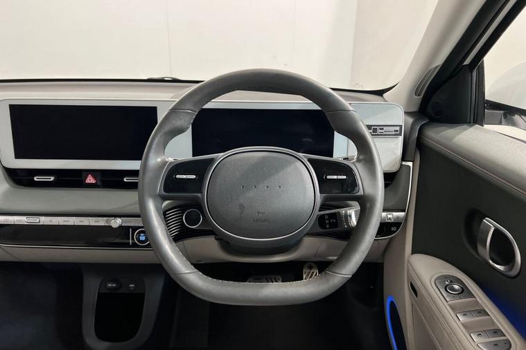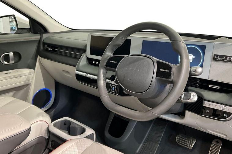 This 2021 Hyundai IONIQ 5 Project 45 is a standout electric vehicle with a clear vehicle history check and an MOT valid until September 2026. As a four wheel drive model, it offers a 73 kWh battery with a maximum range of 268 miles when new. This impressive electric car also features a suite of advanced driver aids, including Blind Spot Collision Avoidance Assist and Blind Spot View Monitor, both incorporating Blind Spot Assistance. For added comfort, it boasts a heated steering wheel and Smart Cruise Control with Stop and Go functionality, which is an adaptive cruise control system. The IONIQ 5 is equipped with Dual LED Headlamps for excellent visibility. Experience the thrill of rapid acceleration with this IONIQ 5, reaching 0-60mph in just 5.2 seconds, a notable performance advantage over many similar vehicles. Charging is convenient, with a full charge at home taking approximately 10 hours and 53 minutes using a 7kW charger, while the fastest public charging can take you from empty to 80% in a swift 17 minutes. This electric Hyundai also offers generous boot space, making it practical for everyday use and longer journeys.
