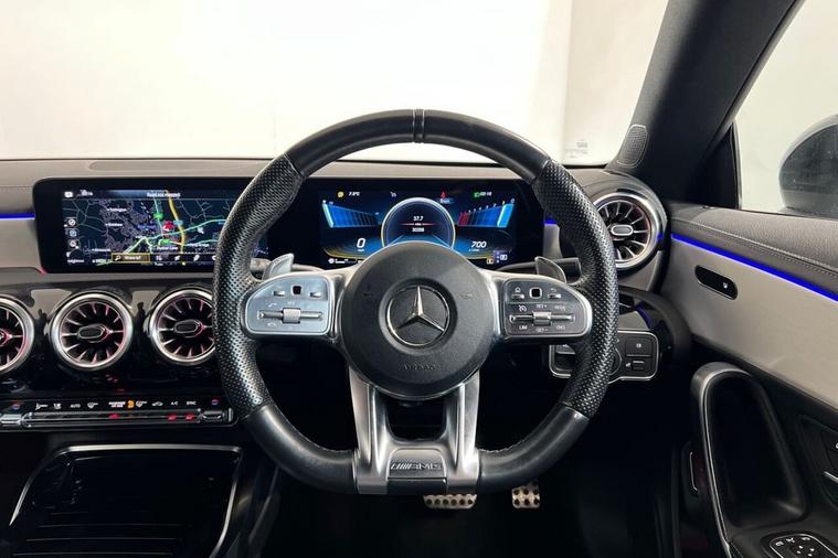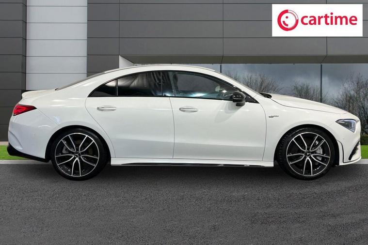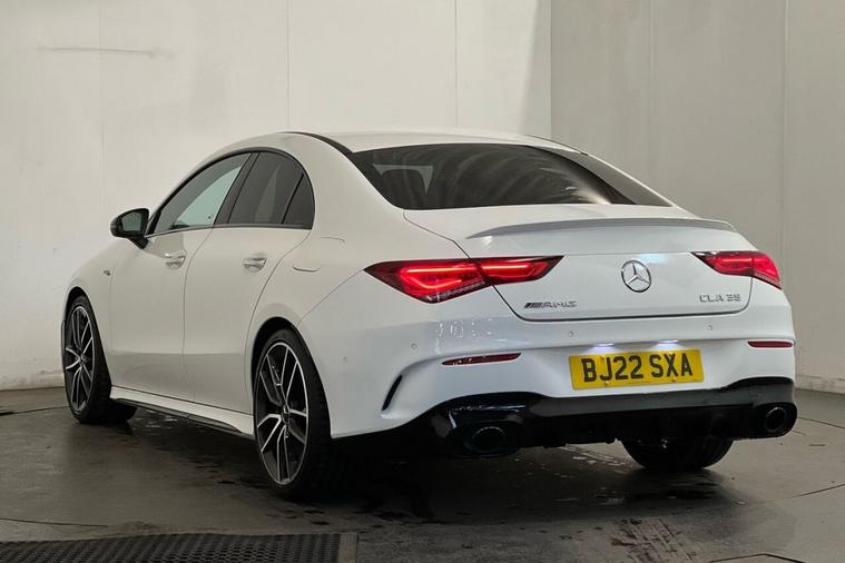 This 2022 Mercedes-Benz CLA35 AMG (Premium) presents a superb ownership opportunity, having been meticulously maintained by just one owner from new. This striking four wheel drive model boasts a powerful 2.0 litre petrol engine, meeting Euro 6 emissions standards, and comes with an MOT valid until August 2026. Inside, youll find the comfort of heated front seats, while the KEYLESS-GO package offers effortless entry and starting. Illumination is provided by LED High Performance headlamps with integrated daytime running lights, ensuring excellent visibility. Experience seamless connectivity with Smartphone Integration, including both Apple CarPlay and Android Auto, allowing you to access your favourite apps on the go. The Mercedes-Benz Sound System delivers an impressive 100W output through six speakers, enhancing every journey. This CLA35 AMG truly stands out, with its remarkable 0-60mph acceleration in just 4.9 seconds, a performance benchmark that clearly sets it apart from other vehicles in its class.