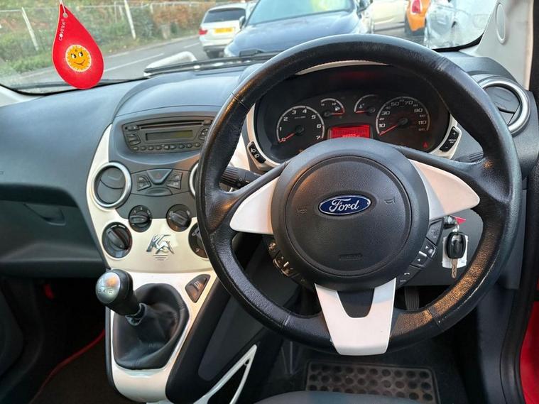 Ford KA Zetec in red, has service history with 9 stamps in the book. Comes with 15 alloy wheels, air conditioning, electric windows, electric mirrors, heated front screen, its a 5 speed, has a radio, usb port, multifunction steering wheel and road tax is only £35 per year. THE CAR WILL HAVE A SERVICE AND 12 MONTHS MOT / PART EXCHANGE IS ALWAYS WELCOME / FREE 12 MONTH AA ROADSIDE RECOVERY INCLUDED / FINANCE IS AVAILABLE VIA OUR WEBSITE LINK / THE CAR HAS BEEN HPI AND MILEAGE CHECKED, ALL OK / WE ARE A FAMILY RUN BUSINESS AND HAVE BEEN TRADING FOR OVER 30 YEARS, WE OFFER DELIVERY IN MAINLAND UK (Please ask for details), WE ARE HERE TO HELP YOU! PLEASE CONTACT US WITH ANY QUESTIONS