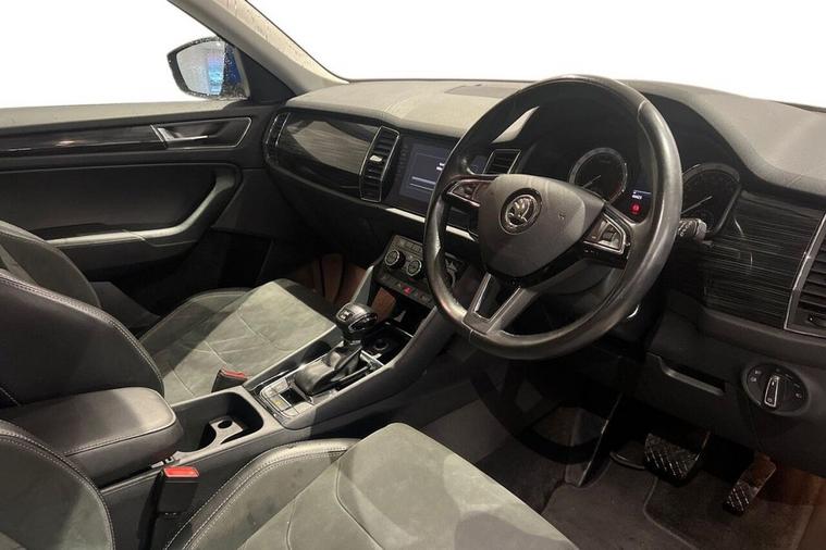 This 2020 Skoda Kodiaq TDI SE L boasts exceptionally low mileage for its age, having covered just 44, 450 miles, and comes with a clear vehicle history check and MOT valid until July 2026. This capable Four Wheel Drive estate features a 2.0 litre Diesel engine and offers flexible seating for seven occupants, meeting Euro 6 emission standards. Convenience is enhanced with the KESSY Keyless Entry and Start System, while Light and Rain Sensors automatically manage the headlights. Youll also find front and rear parking sensors for easier manoeuvring, heated front seats for added comfort, and Bluetooth connectivity for seamless phone integration. This Skoda Kodiaq stands out with its impressive fuel economy, achieving up to 46 miles per gallon, which indicates it is more economical than many similar vehicles. Furthermore, its low insurance group and low CO2 emissions suggest that running costs will be kept to a minimum, making it a sensible choice for everyday use.