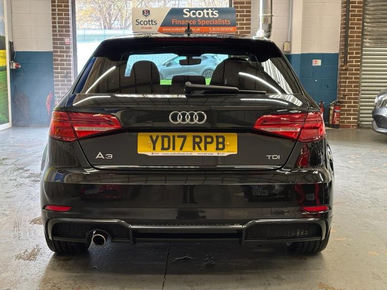 Scotts of Leeds used Car Sales are pleased to offer this AUDI A3 1.6 TDI Black Edition Sportback 5 Door Diesel Manual in Black. The car is in good condition throughout, in the best colour combination and a great specification including Satellite navigation, Apple car play, Bluetooth, Cruise control, DAB digital radio, Dual USB point, Aux point, Automatic lights & wipers, Part leather seats, Voice command, Privacy glass, Drivers armrest, Electric windows, 6 speed gearbox, CD player, Isofix, Alloy wheels and much much more. 1 Owner from New supplied with an up to date service record including 5 services, an MOT until August 2026 and 2 Keys ready to drive away. 3 MONTH NATIONWIDE WARRANTY provided with all vehicles. NATIONWIDE DELIVERY also available. A guaranteed 12 Months MOT can be added for an extra £100. DISCLAIMER: The above specification is true and correct. Any other specification listed elsewhere can sometimes be incorrect. Please check with Sales Executive to clarify this if needed prior to purchase.