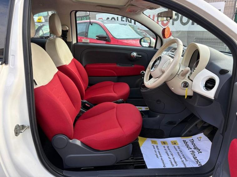 2014 FIAT 500 1.2 Lounge Hatchback 3dr Petrol Manual Euro 6 (s/s) (69 bhp) Great looking Fiat finished Bossa Nova White with Italian stripes and a stunning trim Red with ivory ambience. Car has covered 78000 miles with service history and only £35 to tax. Benefits from Blue & Me, Electric Windows, Alloy wheels, Glass roof with blind, Isofix.