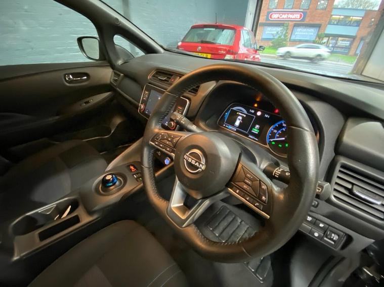 This 2022 Nissan Leaf Acenta boasts a full dealership service history from its single owner, ensuring excellent provenance. As an electric vehicle, it features a 41 kWh battery offering a maximum range of 168 miles when new. Charging at home on a 7kW charger takes approximately 7 hours and 30 minutes, while rapid public charging can take the battery from empty to 80% in just 1 hour and 20 minutes. This Acenta trim level comes equipped with notable features such as Blind Spot Intervention, Intelligent Cruise Control, Automatic Climate Control with a pollen filter and timer, and the convenience of Android Auto and Apple CarPlay integration. Intelligent Auto Headlights also come as standard. The Nissan Leaf Acenta stands out with its comprehensive suite of driver assistance and convenience technologies. The inclusion of Blind Spot Intervention and Intelligent Cruise Control offers enhanced safety and a more relaxed driving experience compared to many other vehicles in its class. Furthermore, the seamless integration of Android Auto and Apple CarPlay, alongside Automatic Climate Control, provides a modern and comfortable cabin environment. These features collectively highlight the Leafs advanced specification and its appeal as a well maintained and feature rich electric car.