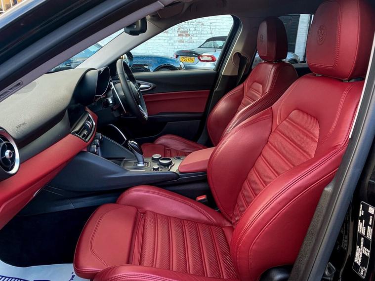 Huge spec car with over £3000 of factory extras finished in Volcano black with a full red leather interior (heated & electric)...great sounding Harmon Kardon sound system with 14 speakers, amp & subwoofer..convenience pack drivers vanity mirror & IP storage compartment.., ..split folding rear seats..twin exhausts..keyless entry..ambient lighting..18 5 hole dark grey stepped alloys with Brembo calipers..black TI front grill..privacy glass..twin exhausts.. satellite navigation with Bluetooth phone & music.. 8-speed seamless automatic gearbox with steering wheel paddles..low mileage + just serviced ..a very economical Alfa to own & run returning 40 MPG+ ULEZ compliant & just £165 road tax.....ask about our award-winning Ascari remaps (220 bhp & 530 lbs torque!) Quadrifoglio alloy wheels & carbon fibre appearance upgrades.. established for over 30 years ..all our cars are prepared to the highest of standards in our fully equipped workshop..we can arrange UK-wide delivery or click & collect for speed & convenience ... we are finance credit experts & have rates from just 5% fixed for up to 60 months...buy with confidence from Veloces..reserve now for just £99..