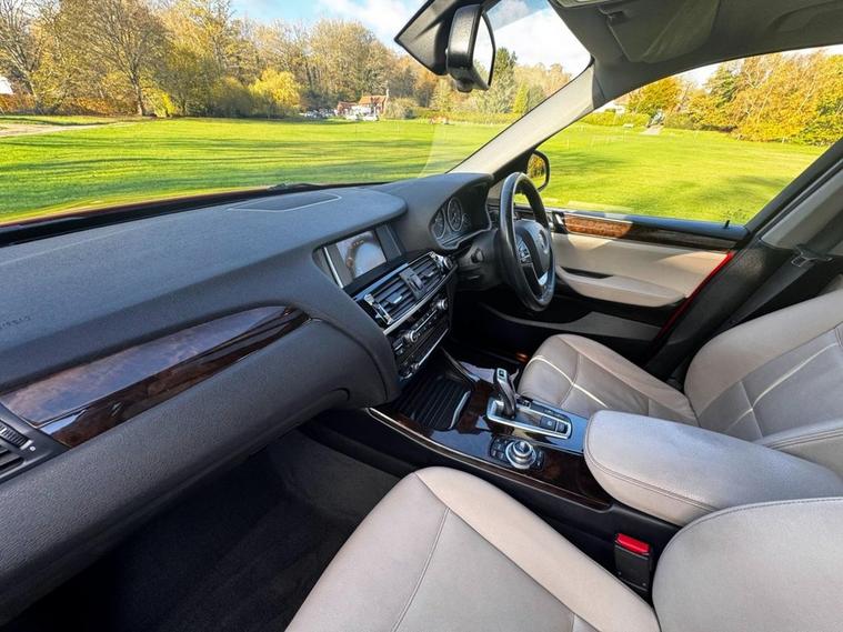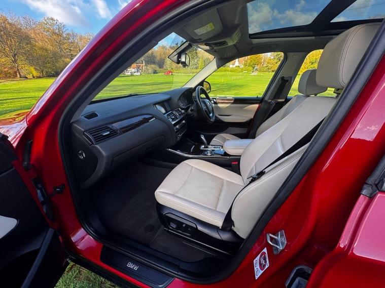 Finished in the rare and striking Melbourne Red metallic with Ivory leather interior, this X3 3.0d SE xDrive belies its mileage. 2 owners from new and boasting a comprehensive service history with 11 services recorded ( 10 by BMW main dealers ), it also features a number of desirable options including Panoramic Glass Roof, Heated Front Seats, Powered Boot, Rear Parking Sensors, Satellite Navigation and much more. Supplied with a 3 month warranty and 12 months AA Breakdown Cover. Viewing by appointment.