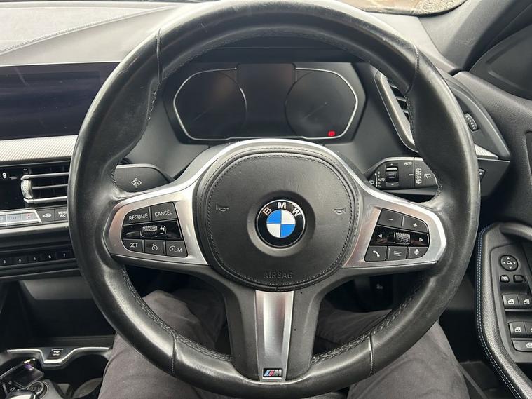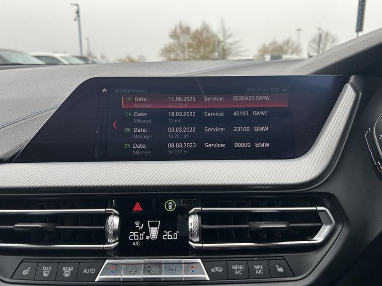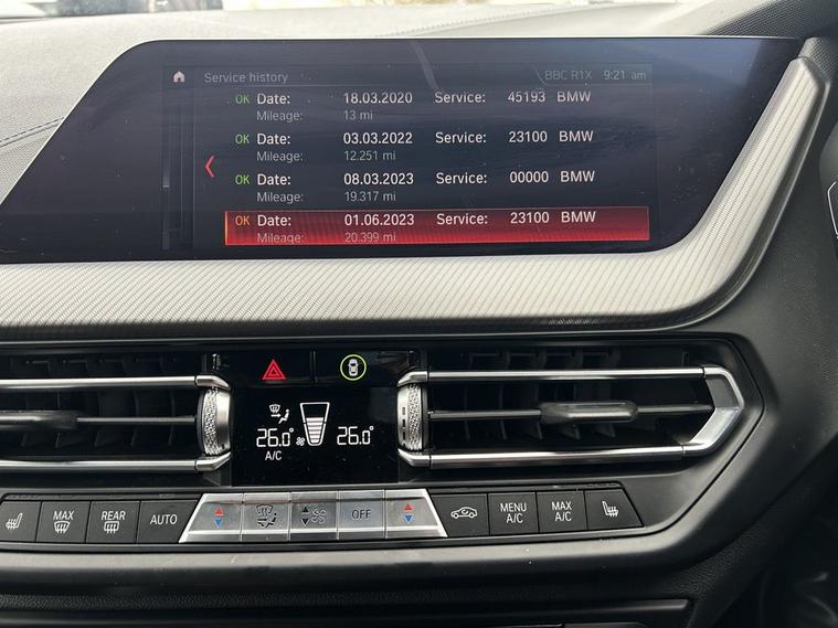 This 2020 BMW 1 Series 118i M Sport presents a superb opportunity with its remarkably low mileage of just 35, 477 miles for its age, complemented by a clear vehicle history check. This Euro 6 compliant model boasts a responsive 1.5 litre petrol engine paired with a smooth dual-clutch automatic transmission, making for an engaging driving experience. Inside, youll find the M Sport trim enhanced by striking perforated Dakota leather upholstery in black with a distinctive blue highlight. Practicality is also key, with front and rear Park Distance Control, including front parking sensors, and a rain sensor that automatically activates the headlights. The BMW Live Cockpit Plus system, featuring Bluetooth connectivity, ensures you stay connected and informed on every journey. The performance of this 118i M Sport is a notable highlight, achieving 0-60mph in a brisk 8.5 seconds, demonstrating its spirited nature. This acceleration figure indicates a more dynamic performance compared to many other vehicles in its class. The combination of the M Sport styling, the advanced technology within the BMW Live Cockpit Plus, and the efficient yet powerful 1.5 litre engine, all contribute to a premium driving experience that sets this BMW 1 Series apart.