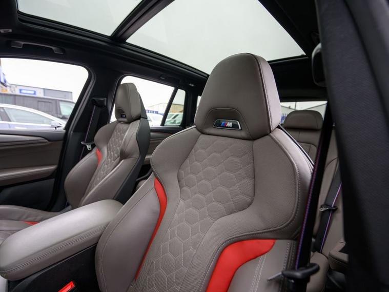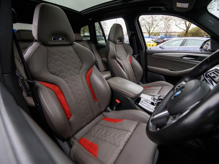 Sagitta is delighted to present for sale this stunning BMW X3 3.0i Competition drive Automatic in Metallic Donington Grey with a Full Adelaide Merino Leather Interior, the car benefits from the following specifications, Satellite Navigation System, Reversing Camera, Bluetooth, Voice Control, HEAD UP DISPLAY, Cruise Control, Multi-Function Steering Wheel, Start Stop System, Harman Kardon Surround System, DAB Tuner, Connected Package Professional, Competition Package, Carbon Interior Trim, Lumbar Support, Parking Assistance, Electric Heated Front Seats, Privacy Glass, Adaptive LED Headlights, Sliding Panoramic Sunroof, BMW 21 765M Alloys with Red Callipers, M Sports Exhaust System, Service History at BMW at 1074 miles, at 6967 miles, at 9222 miles, at 20, 910 miles, MOT till 16.11.2026 which included 4 New Tyres, Private Plate stays with the car ( PR08 DAN) More photos are available on our website, Part Exchange Welcome, all our cars come with a 6-month Warranty through Autoguard and 12 months of AA Roadside Assistance. Nationwide delivery is available, please contact us for a quote. Deposits can be taken over the phone. Payments can be made via bank transfer and Finance applications can be completed online. Whilst every effort is made to ensure the above details are correct, there may be some discrepancies, so please make sure to contact us for exact specifications and history on this vehicle. The vehicle specification displayed may not be exact for this vehicle. Please contact us to confirm the precise specifications.