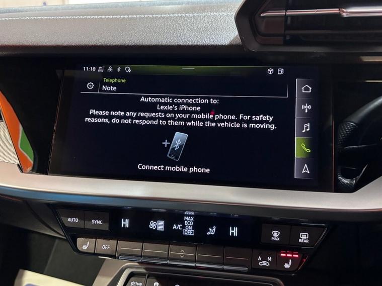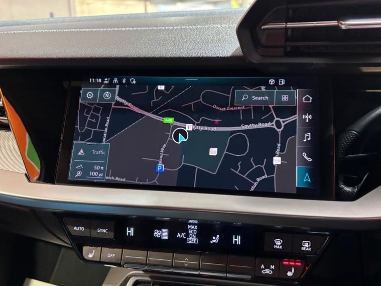 This 2020 Audi A3 TFSI S line offers a refined driving experience with its Euro 6 compliant 1.5 litre petrol engine. As a 2020 model, this A3 benefits from the S line trim, enhancing its sporty appeal. The Comfort and Sound Package adds significant value, including a luxury branded sound system for an immersive audio experience, and comprehensive parking assistance with front and rear sensors, as well as a rear camera to make manoeuvring effortless. Youll also appreciate the heated seats for added comfort during colder journeys. The interior features a stylish 3 spoke leather multi function flat bottomed sports steering wheel, and the convenience of a Bluetooth interface for seamless phone connectivity. The performance of this Audi A3 is noteworthy, achieving 0-60mph in just 8.7 seconds, demonstrating its responsive acceleration. This capability, combined with the large boot space, makes it a practical yet engaging choice for everyday driving and longer trips. The inclusion of a light and rain sensor, which automatically activates the headlights, further enhances the driving experience by adapting to changing conditions. These features collectively highlight how this Audi A3 TFSI S line provides a superior combination of comfort, technology, and performance compared to other vehicles in its class.