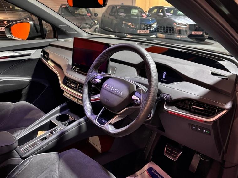 This 2025 Skoda Enyaq 85x SportLine is a remarkable example, boasting an incredibly low mileage of just 818 miles, making it practically new. As a single owner vehicle, it has been meticulously cared for. This electric SUV features a substantial 82 kWh battery, offering a maximum range of 334 miles from new, perfect for both daily commutes and longer journeys. Charging at home on a 7kW charger takes approximately 12 hours, while rapid public charging can replenish the battery from empty to 80% in as little as 28 minutes. The Enyaq 85x SportLine comes equipped with a suite of advanced features, including front and rear parking sensors with parking assistance, heated front seats for added comfort, and a sophisticated Advanced Package. This package enhances the driving experience with a branded sound system, a head up display, LED headlights, a 360 degree camera for effortless parking, and memory seats. The performance of this Skoda Enyaq is equally impressive, with an acceleration of 0-60mph achieved in a swift 6.5 seconds, demonstrating its dynamic capabilities. The 85x SportLine trim signifies a sportier feel, further enhanced by the 3 spoke leather heated multi function steering wheel complete with paddles for selecting recuperation levels. This vehicle also offers a generous boot space, providing ample room for luggage or shopping. The Four Wheel Drive system ensures confident handling in various conditions, while the Bluetooth connectivity keeps you connected on the go. These highlights collectively position this Skoda Enyaq 85x SportLine as an exceptional choice, offering a blend of efficiency, technology, and driving pleasure that surpasses many other vehicles in its class.