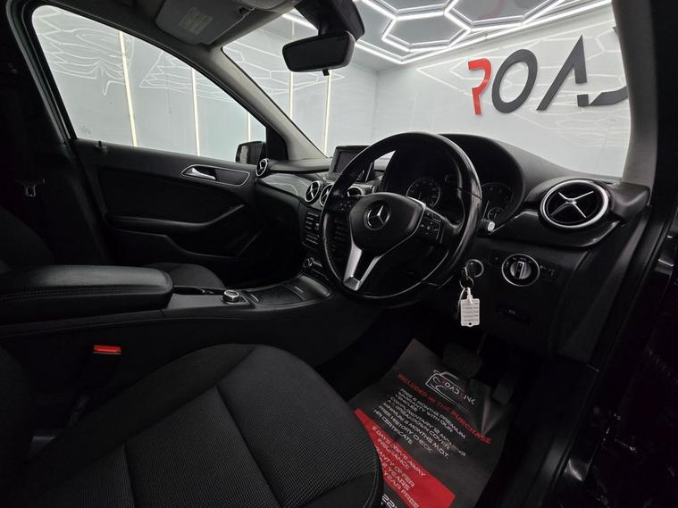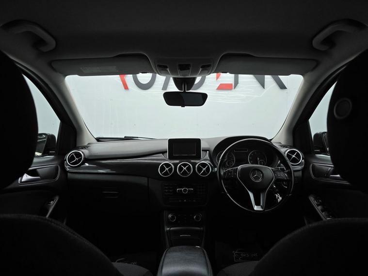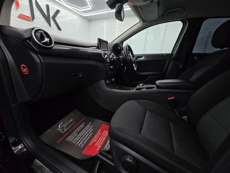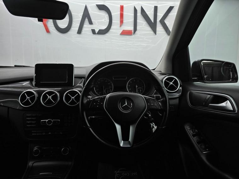 This Mercedes-Benz B180 BlueEfficiency SE comes with a strong spec including 16 10-spoke alloys, a 5.8 colour display, Active Park Assist with Parktronic, front and rear sensors, LED daytime running lights and ATTENTION Assist. Inside you get a leather multi-function steering wheel, ambient lighting, front footwell lights, chrome interior trim, air conditioning, Bluetooth, Audio20 radio/CD, USB and AUX ports, plus a centre armrest and split-folding rear seats for extra practicality. It also features projection-beam headlights, automatic headlamp activation, rain-sensing wipers, electrically adjustable heated mirrors, electric windows front and rear, ISOFIX, Collision Prevention Assist, cruise and stability systems, tyre pressure loss warning and a full alarm/immobiliser setup. A clean, well-equipped B-Class with all the key comfort, safety and convenience extras.