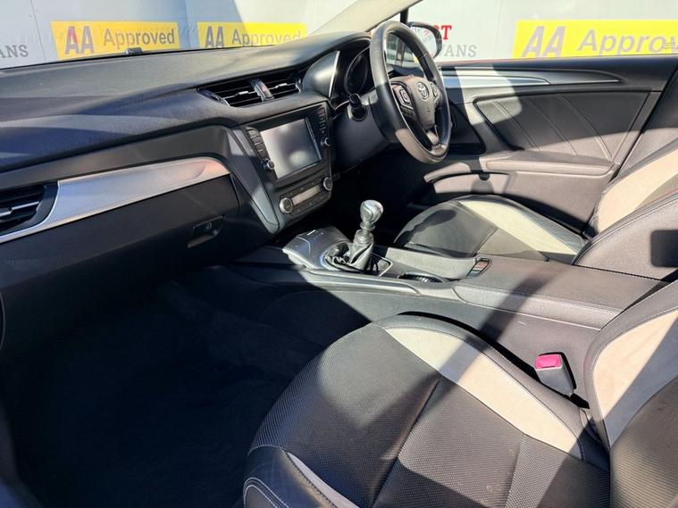 The Toyota Avensis offers a refined blend of comfort, efficiency, and understated style. Powered by a robust 2.0-litre diesel engine delivering 143 PS, this Euro 6-compliant model pairs smooth manual transmission with stop/start technology for enhanced fuel economy and lower emissions. Its sleek saloon silhouette is complemented by sharp design cues, alloy wheels, and LED daytime running lights, giving it a confident road presence without shouting for attention. Inside, the Avensis Design trim impresses with a spacious, well-appointed cabin featuring dual-zone climate control, a touchscreen infotainment system with navigation, Bluetooth connectivity, and a reversing camera for added convenience. Supportive seats and quality materials make long journeys a pleasure, while Toyotas reputation for reliability ensures peace of mind. Whether youre commuting or cruising, this Avensis delivers a composed drive with the practicality and polish that savvy buyers appreciate.