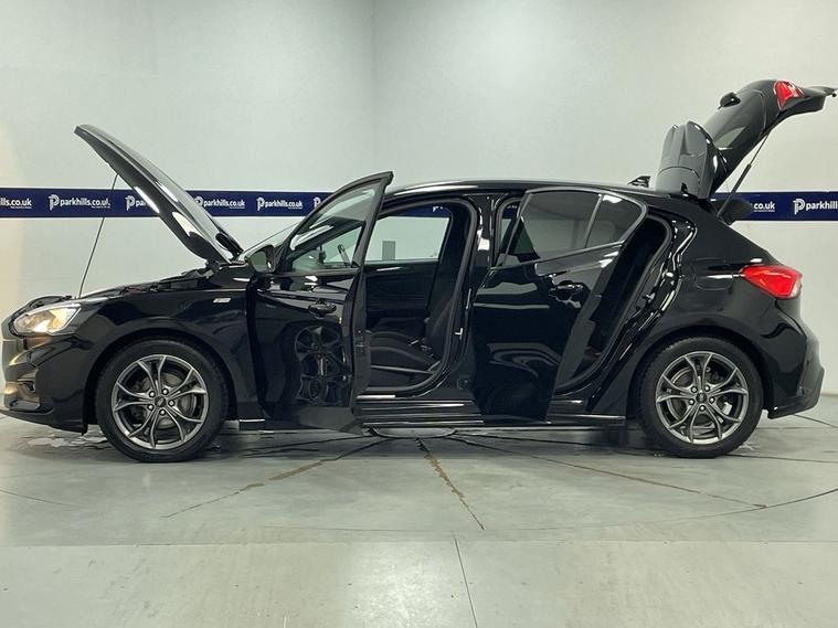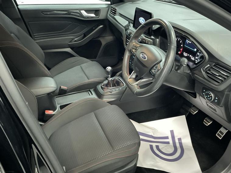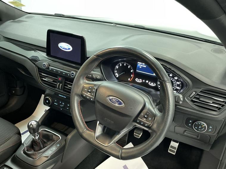 ST-LINE BODY STYLING, FORD TOUCHSCREEN INFOTAINMENT SYSTEM FEATURING HDD SAT NAV, DAB RADIO AND BLUETOOTH PHONE AND MEDIA ENABLING SEAMLESS MUSIC STREAMING, AIR CON, 17 ALLOYS, DAYTIME RUNNING LIGHTS, CRUISE CONTROL, FINANCE MONTHLY PAYMENTS AVAILABLE ON THIS CAR. Finished in Agate black metallic with black premium cloth interior this 2019 Ford Focus ST Line offers excellent peace of mind. The 1.0L petrol model, finished in the sporty ST Line trim, is a Euro 6 compliant vehicle. Inside, youll find the Ford SYNC system featuring an 8 inch TFT touchscreen that seamlessly integrates with both Android Auto and Apple CarPlay, allowing for easy access to your favourite apps and navigation. The convenience of automatic on-off headlights ensures you always have optimal visibility, while FordPass Connect keeps you connected on the go. Experience a responsive drive with a 0-60mph acceleration time of just 10.0 seconds, demonstrating its lively performance. This Focus also boasts low CO2 emissions, making it a more environmentally conscious choice compared to many similar vehicles. Furthermore, the generous boot space provides ample room for all your luggage and shopping needs, highlighting its practicality for everyday use and longer journeys., heated screen, start-stop, electric windows and mirrors, remote central locking alarm and immobilizer, centre arm rest, isofix rear seats, Supplied with HPI report and vehicle book pack. THIS CAR IS AA APPROVED AND SOLD WITH A 145 POINT AA INSPECTION CERTIFICATE AND A NATIONWIDE PARTS AND LABOUR WARRANTY, SAME DAY DRIVE AWAY AVAILABLE ON ALL AA INSPECTED CARS. WE OFFER WITH ALL OF OUR CARS A BRONZE, SILVER AND GOLD PROTECTION PACKAGE WHICH INCLUDES A 145 POINT AA INSPECTION, NATIONWIDE ALL MECHANICAL AND ALL ELECTRICAL WARRANTY, AA BREAKDOWN COVER, 12 MONTHS MOT TOP UP VOUCHER, GARDEX SANITIZATION, HPI GOLD CHECK AND COURTESY CAR AVAILABILITY FROM £299. WE ALSO OFFER ALL TYPES OF FINANCE. 3 YEAR PARTS / LABOUR WARRANTY AND SERVICE PLANS AVAILABLE ON ALL AA INSPECTED CARS.