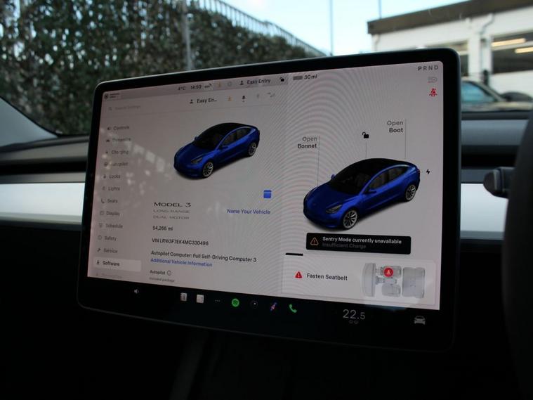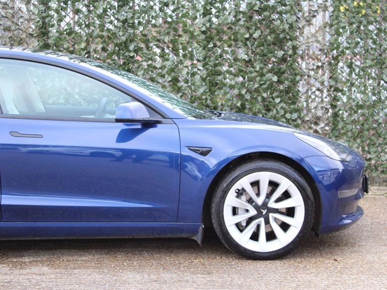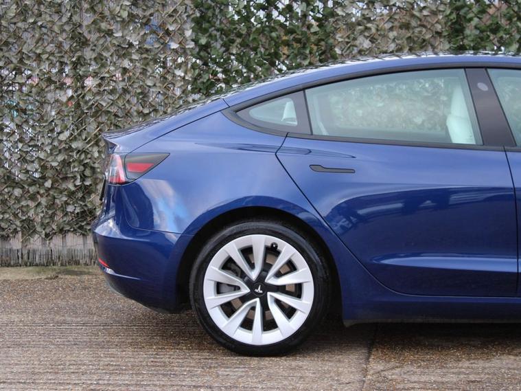 **92.1% BATTERY HEALTH** WHITE LEATHER ** This 2021 Tesla Model 3 Long Range presents a superb ownership proposition, having been cherished by just one owner since new. As an all electric vehicle, it offers a smooth and quiet driving experience, powered by a 78 kWh battery that provides an impressive maximum range of 360 miles when new. Its Four Wheel Drive drivetrain ensures confident handling in various conditions, and you can expect a full charge at home using a 7kW charger in approximately 12 hours. For longer journeys, the fastest public charging can replenish the battery from empty to 80% in as little as 26 minutes. The Tesla Model 3 Long Range stands out with its remarkable performance, achieving 0 to 60 miles per hour in a swift 4.2 seconds, a figure that highlights its dynamic capabilities compared to many other vehicles. This exceptional acceleration is complemented by a generous boot space, offering ample practicality for everyday needs and weekend getaways. The 360 mile maximum range at new further underscores its suitability for both commuting and extended travel, making it a compelling choice for those seeking an efficient and capable electric car.